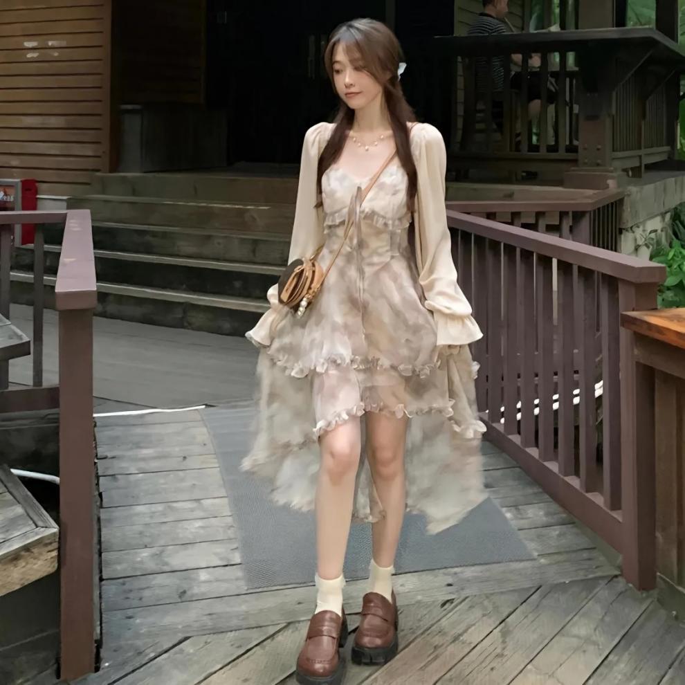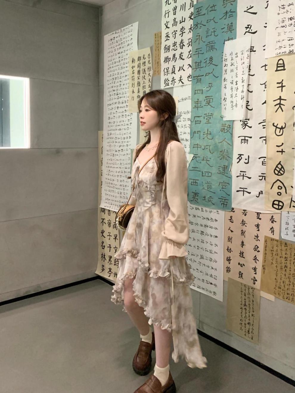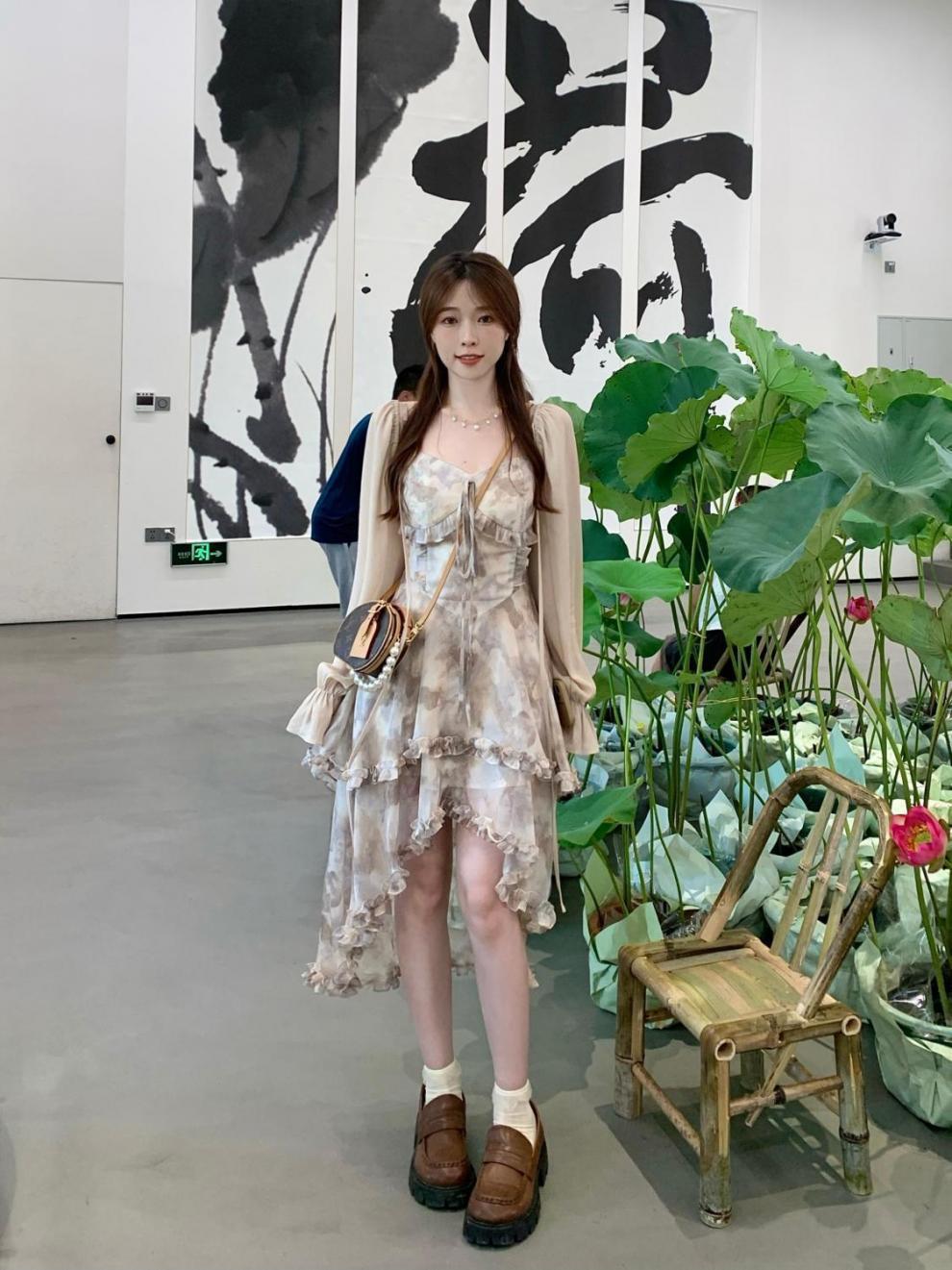 슬링 원피스 기질 현기증 우아한 꽃 원피스 달콤한 쉬폰 카디건 여성 여름 세트 국경 도매