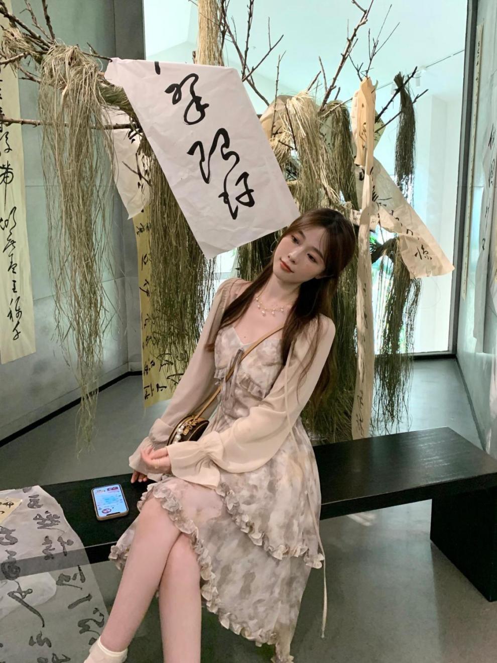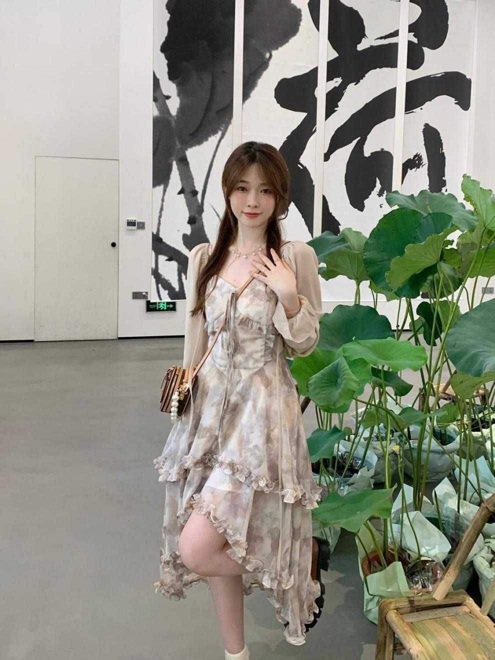 슬링 원피스 기질 현기증 우아한 꽃 원피스 달콤한 쉬폰 카디건 여성 여름 세트 국경 도매스토어 가기
