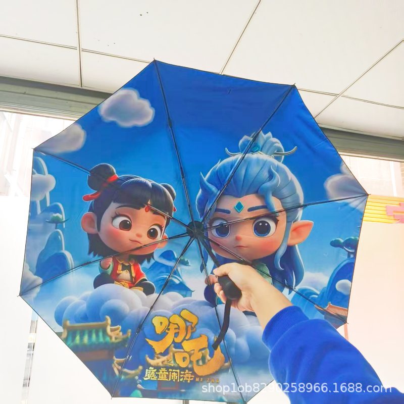 악마 아이의 바다 주위에 Ao-Bing 페인트 인쇄 된 검은 접착제 우산은 무엇입니까? 높은 색상 가치 전체 자동 선 스크린 방풍 우산스토어 가기