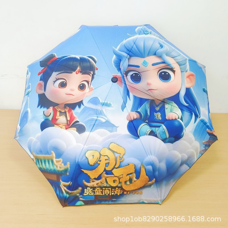 此款是三折全自动 黑胶晴雨伞、支持一件代发 印刷LOGO 定制图案