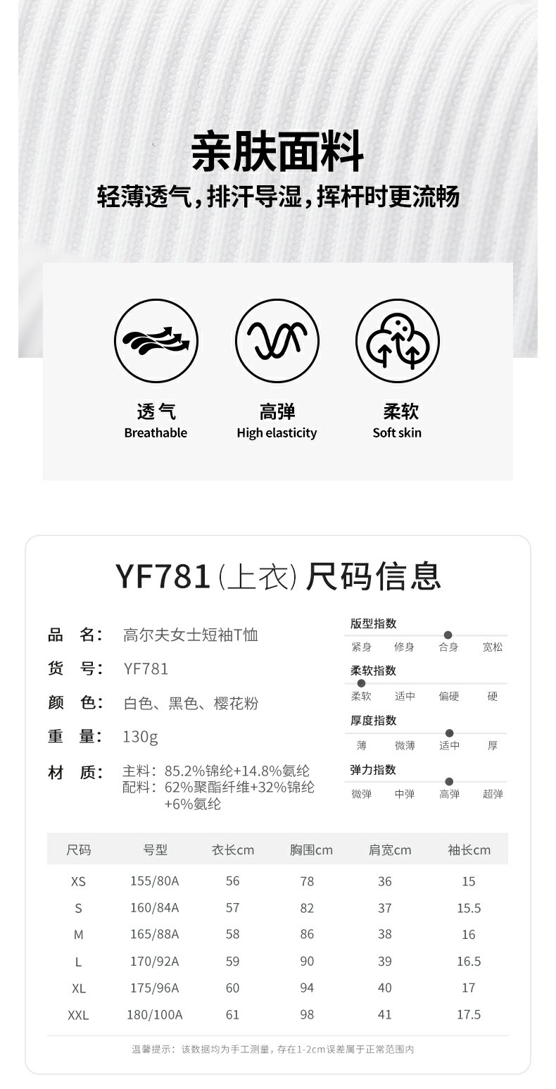 名 称 高尔夫女士短袖T恤 码 数 XS/S/M/L/XL/XXL