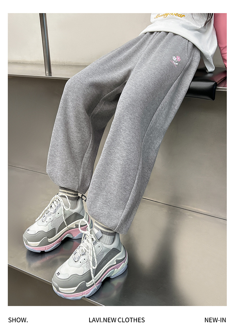 LAVI 봄 새 여자 운동복 느슨한 캐주얼 바지 큰 어린이 유행 올매치 발 묶음 바지 여자 스포츠 바지