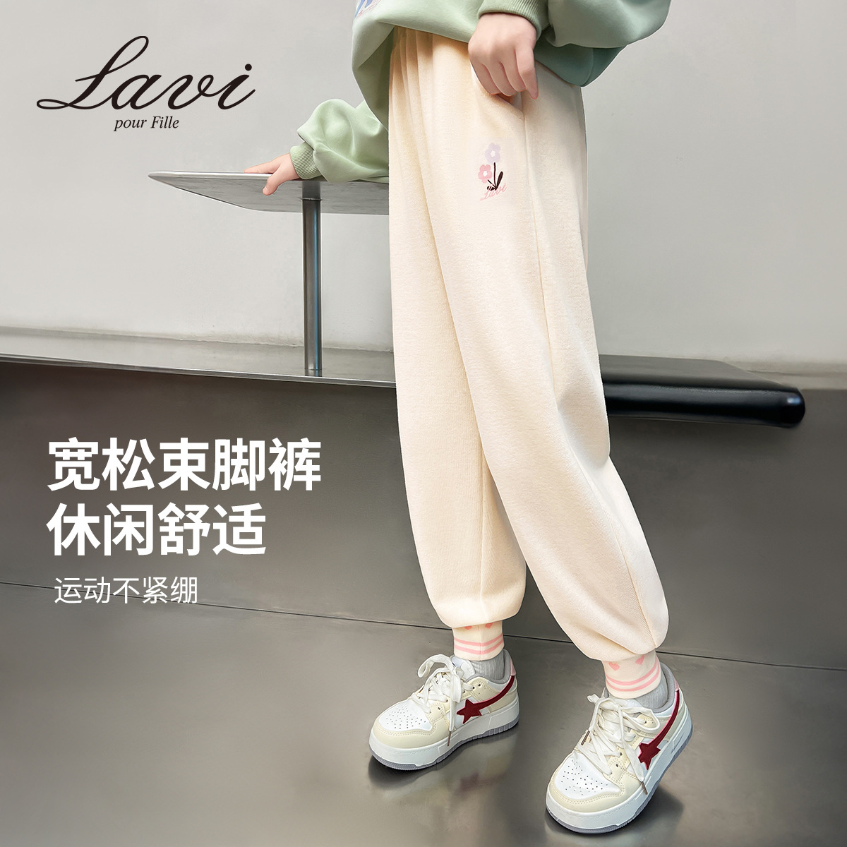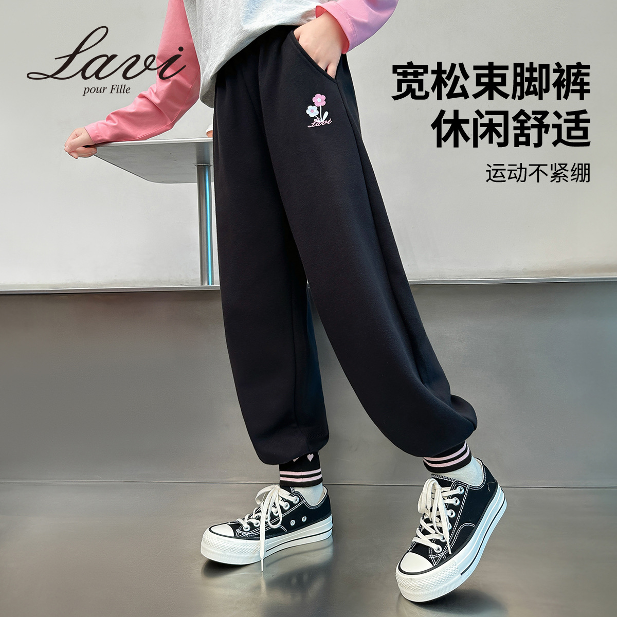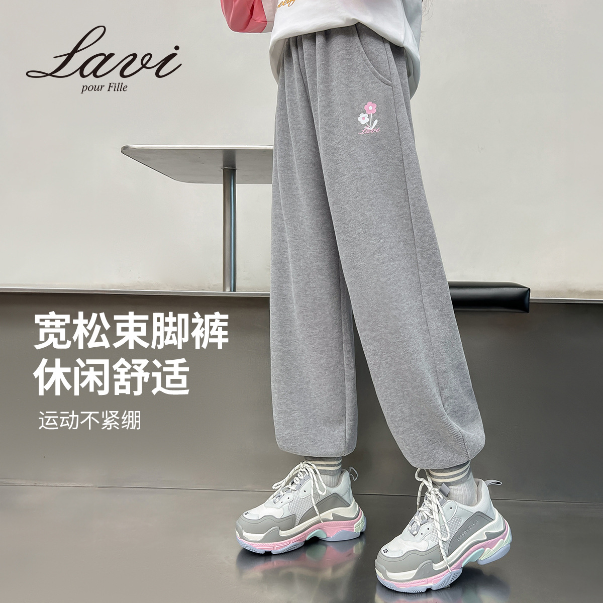 LAVI 봄 새 여자 운동복 느슨한 캐주얼 바지 큰 어린이 유행 올매치 발 묶음 바지 여자 스포츠 바지스토어 가기