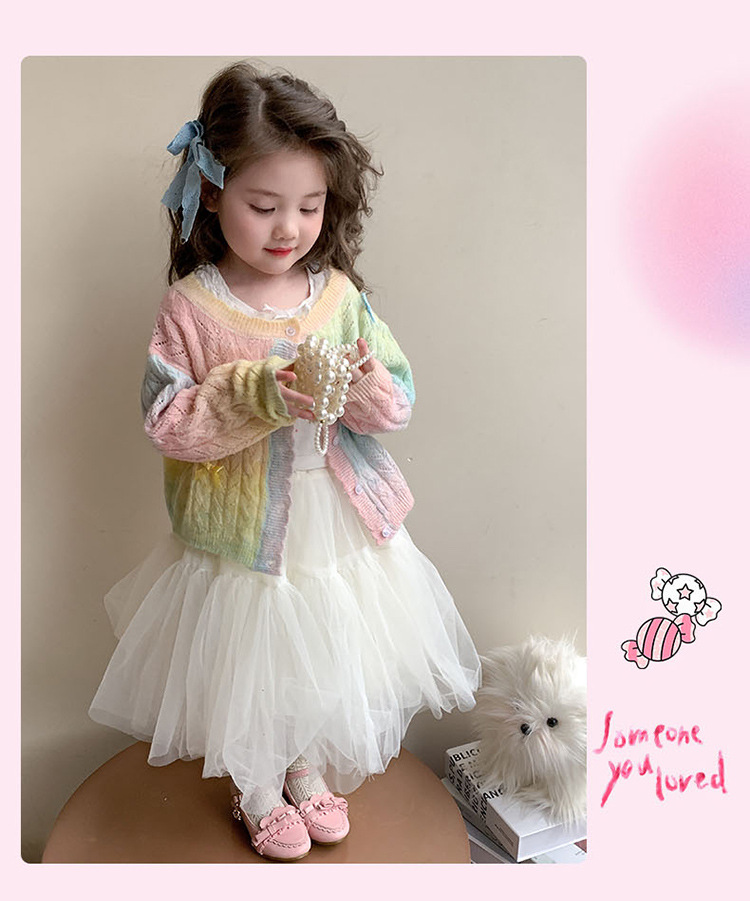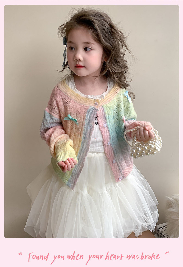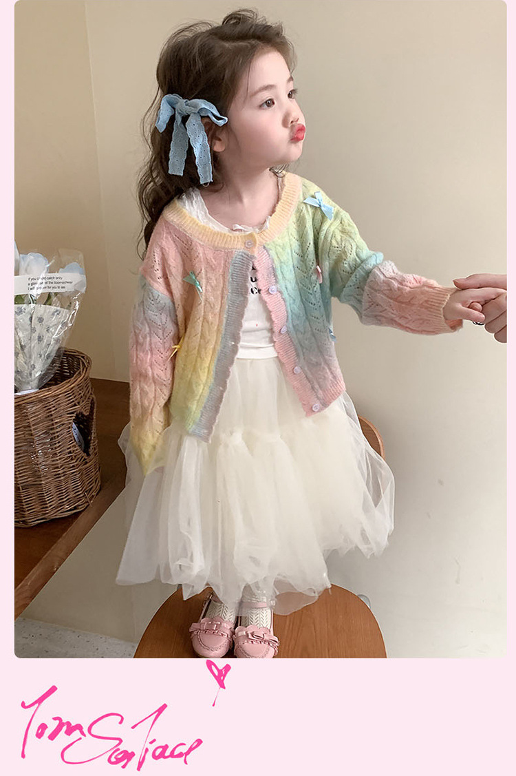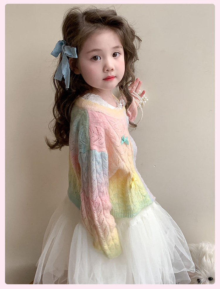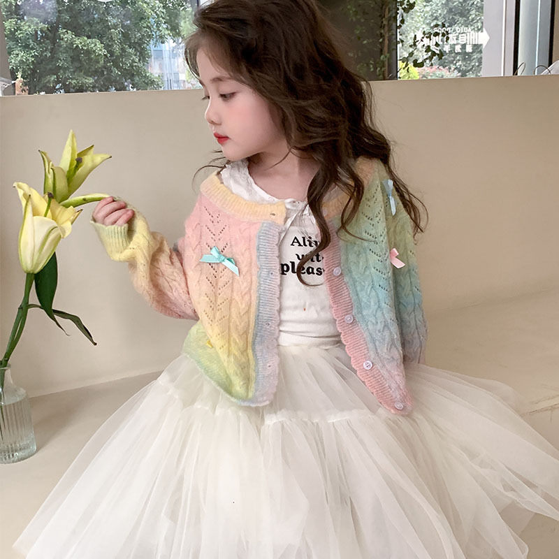 소녀 니트웨어 봄과 가을 무지개 스웨터 카디건 어린이 도파민 어린 소녀의 봄 2025 새 코트스토어 가기