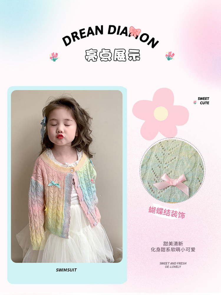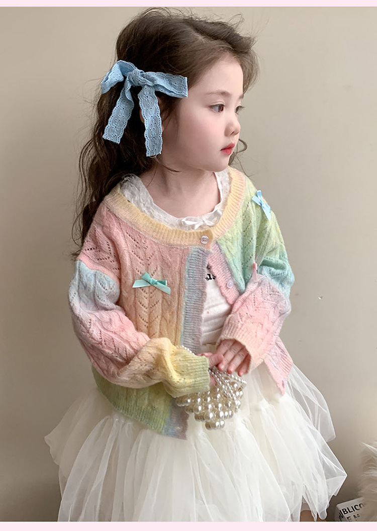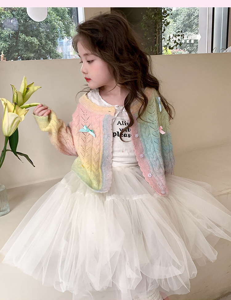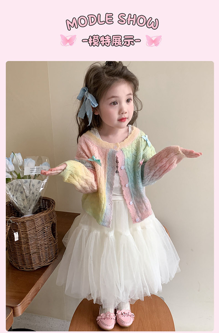 소녀 니트웨어 봄과 가을 무지개 스웨터 카디건 어린이 도파민 어린 소녀의 봄 2025 새 코트스토어 가기