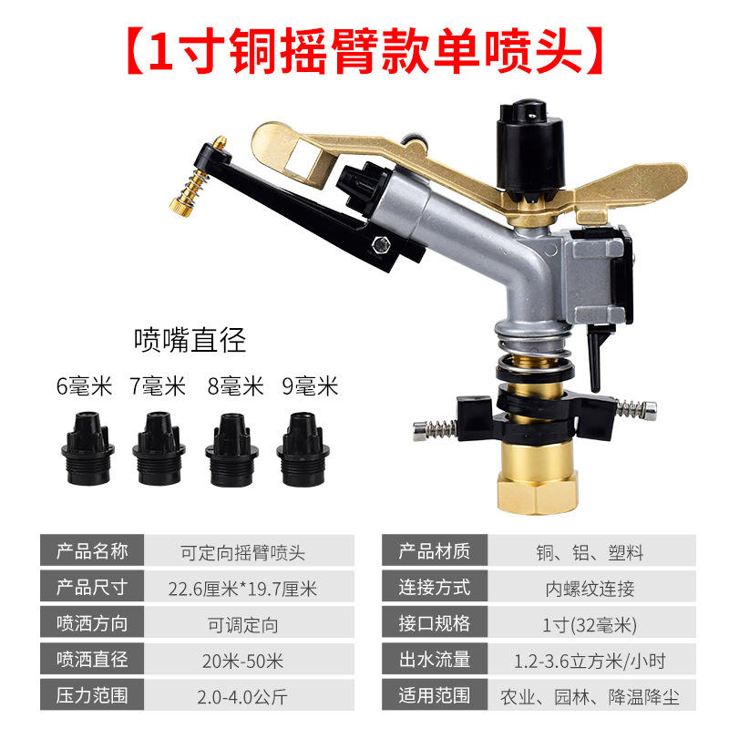 스프링클러 스프링클러 로커 암 스프레이 건 농업 관개 전체 자동 회전 정원 잔디 과수원 스프링클러 냉각 먼지 세트