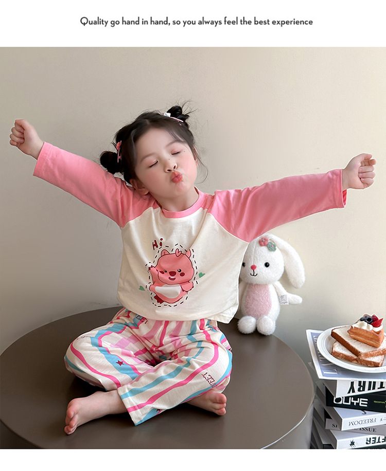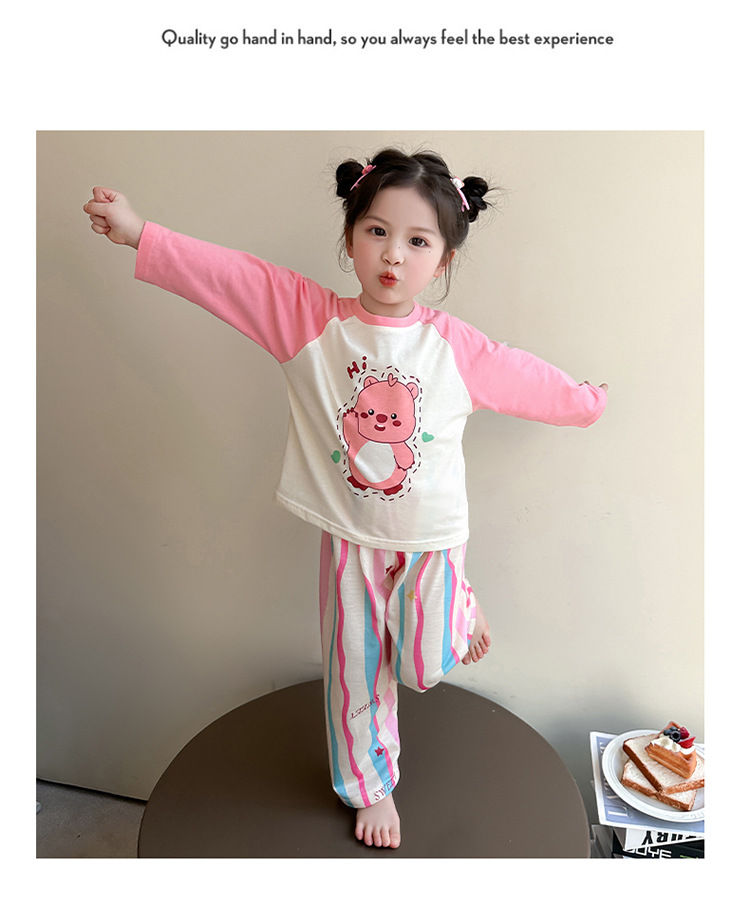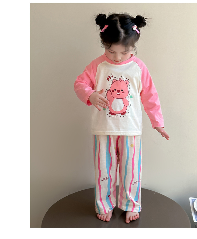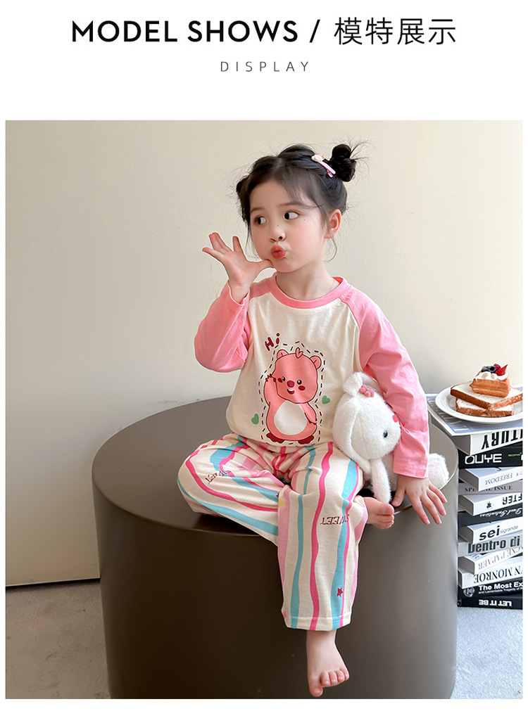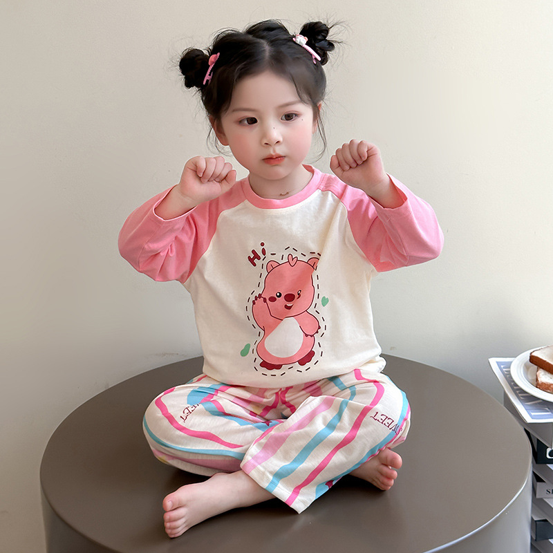 소녀 면 잠옷 2025 봄과 가을 새로운 어린이 가정 옷 세트 아기 소녀 긴 소매 귀여운 에어컨 옷스토어 가기