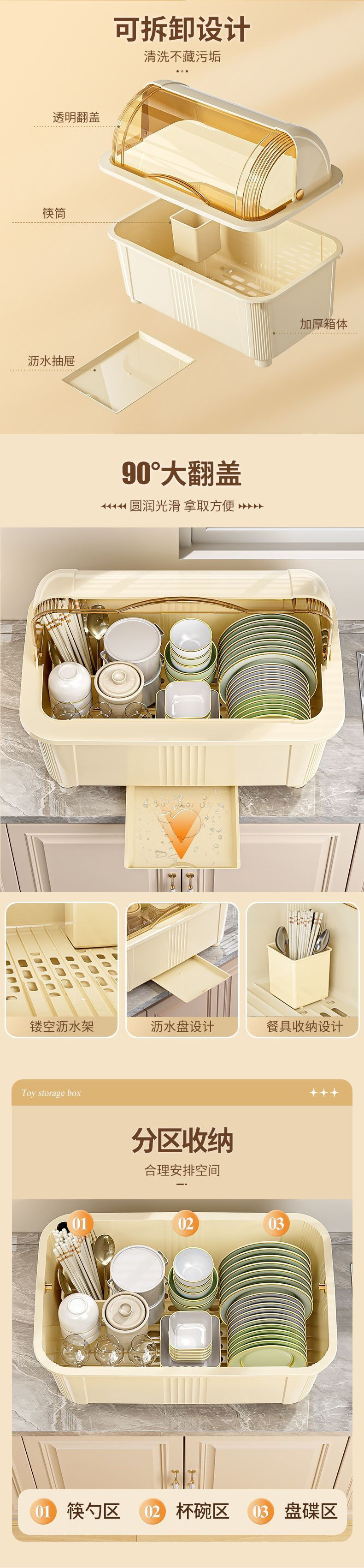 주방 그릇 및 젓가락 저장 상자 찬장 가구 통합 휴대용 카운터 탑 보관 랙 뚜껑 대형 개방 플립 타입스토어 가기