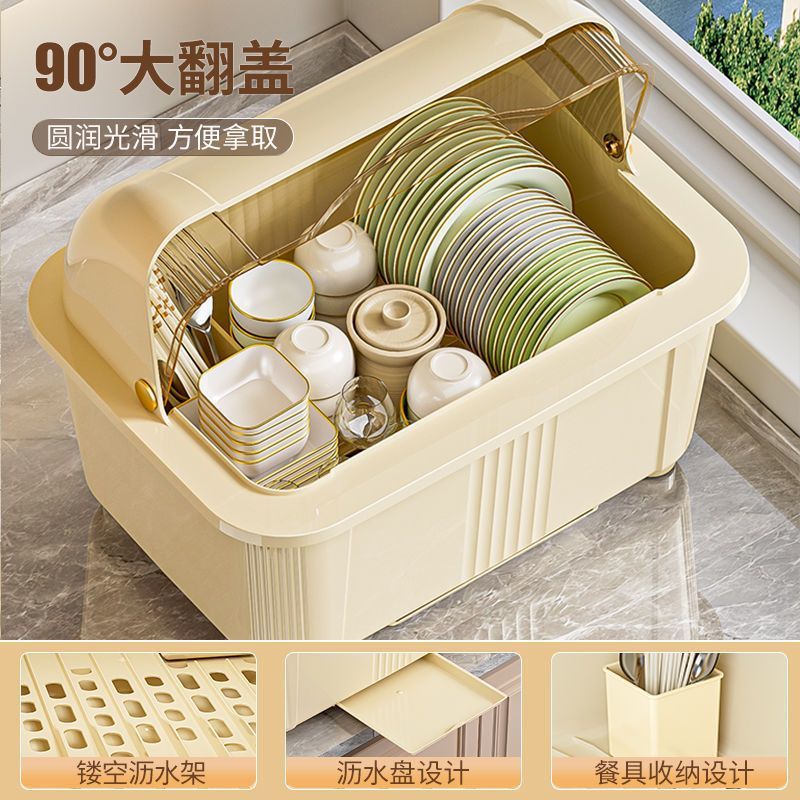 주방 그릇 및 젓가락 저장 상자 찬장 가구 통합 휴대용 카운터 탑 보관 랙 뚜껑 대형 개방 플립 타입