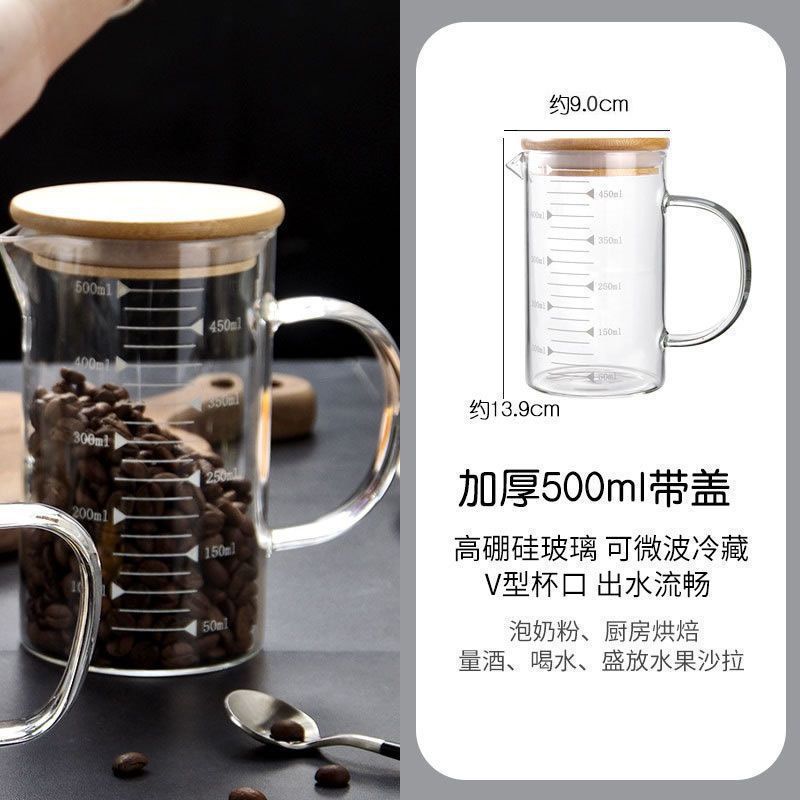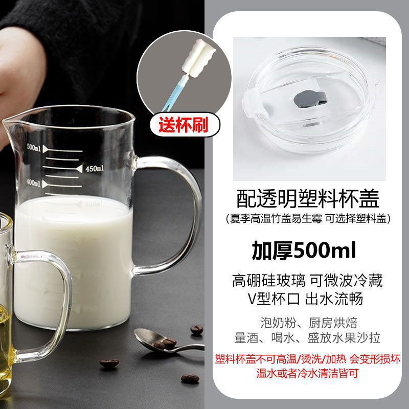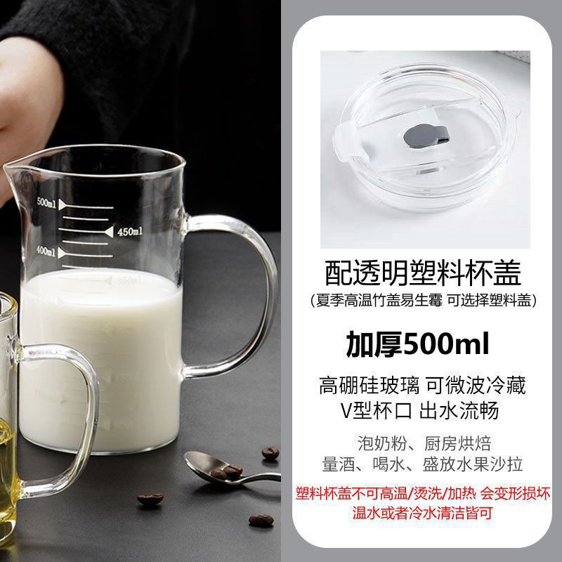 크기 유리 컵이있는 두꺼운 측정 컵 뚜껑 티 컵과 함께 고온 저항 베이킹 측정 컵 전자 레인지 우유가 될 수 있습니다.스토어 가기