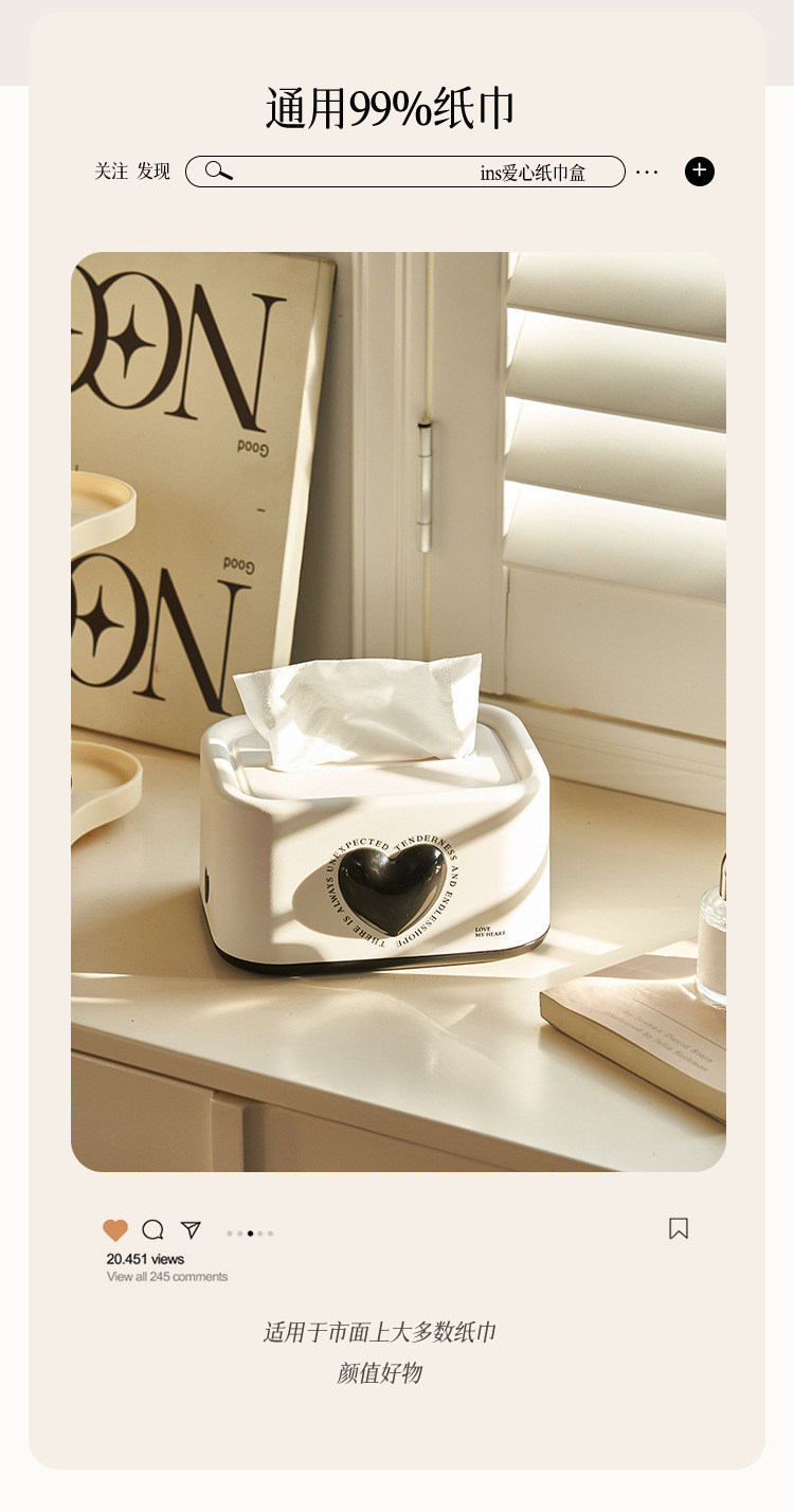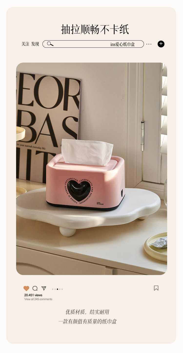 Ins 스타일 사랑 조직 상자 거실 침실 장식품 창조적 인 데스크탑 조직 보관 상자 봄 종이 상자 하이 엔드스토어 가기