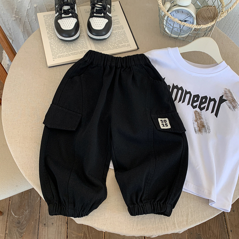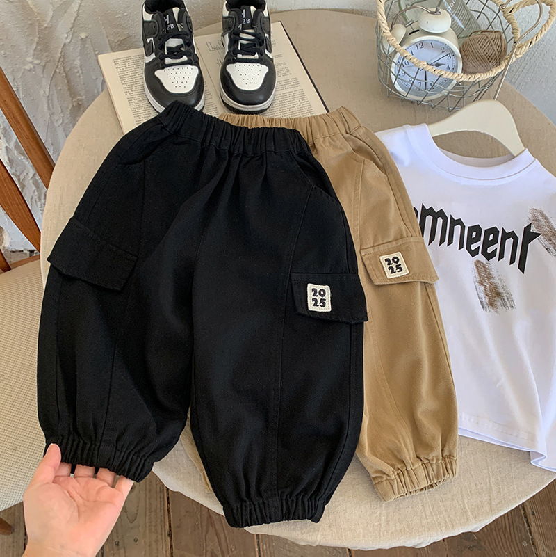 어린이 크레인 바지 2025 새 봄 캐주얼 바지 소년 한국 잘 생긴 아기 바지 서양식 바지 올매치