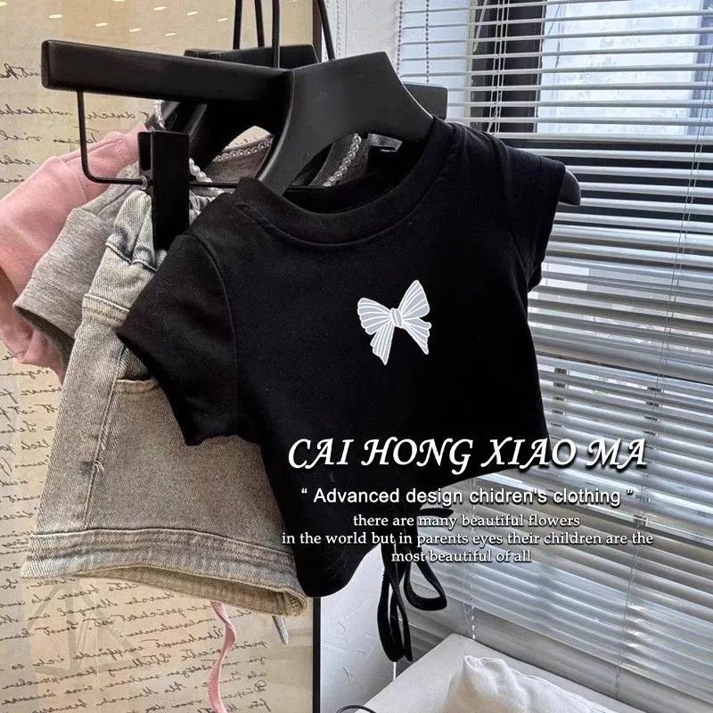 국경 소녀 순면 반소매 활 백리스 셔츠 여름 한국 스타일 쇼트 탑 패션 스타일리시한베이스 셔츠 트렌디