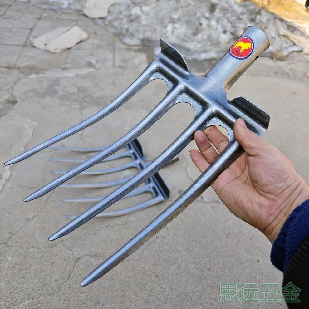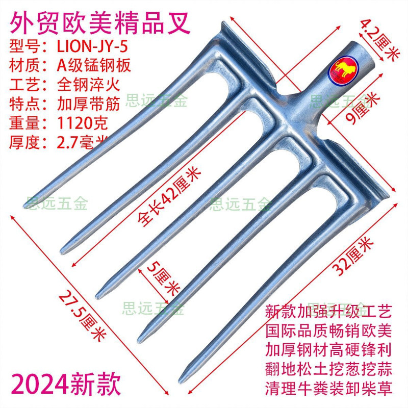 Lion Steel Fork Manganese Steel, 5 개의 6 개의 치아 두꺼운 담금질 소 덩크 포크 농장 도구가 땅을 돌리고 흙을 풀어 종양과 마늘 대외 무역을 파다