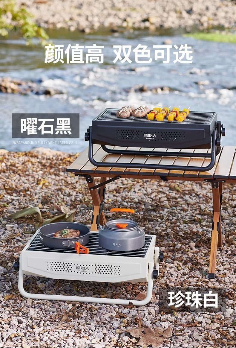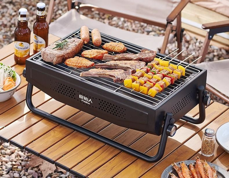 원시적 인 바베큐 스토브 가정용 바베큐 그릴 야외 가벼운 담배 탄소 그릴 휴대용 접이식 바베큐 스토브 랙 바베큐
