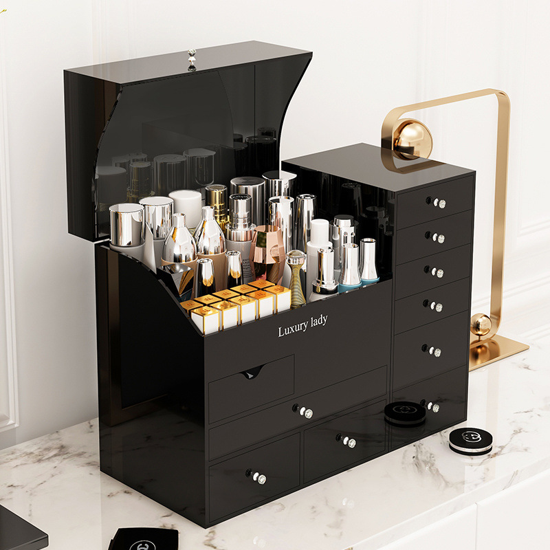 가벼운 럭셔리 방진 화장품 보관 상자 가정용 데스크탑 드레싱 테이블 립스틱 상자 스킨 케어 제품 스토리지 랙 피델리티 박스스토어 가기
