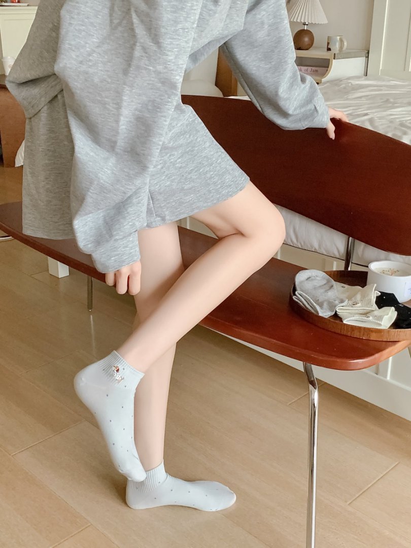 25 봄 여름 신상 솔리드 컬러 귀여운 양말 한국 자수 면 통기성 땀 흡수 짧은 튜브 캐주얼 양말 여성용