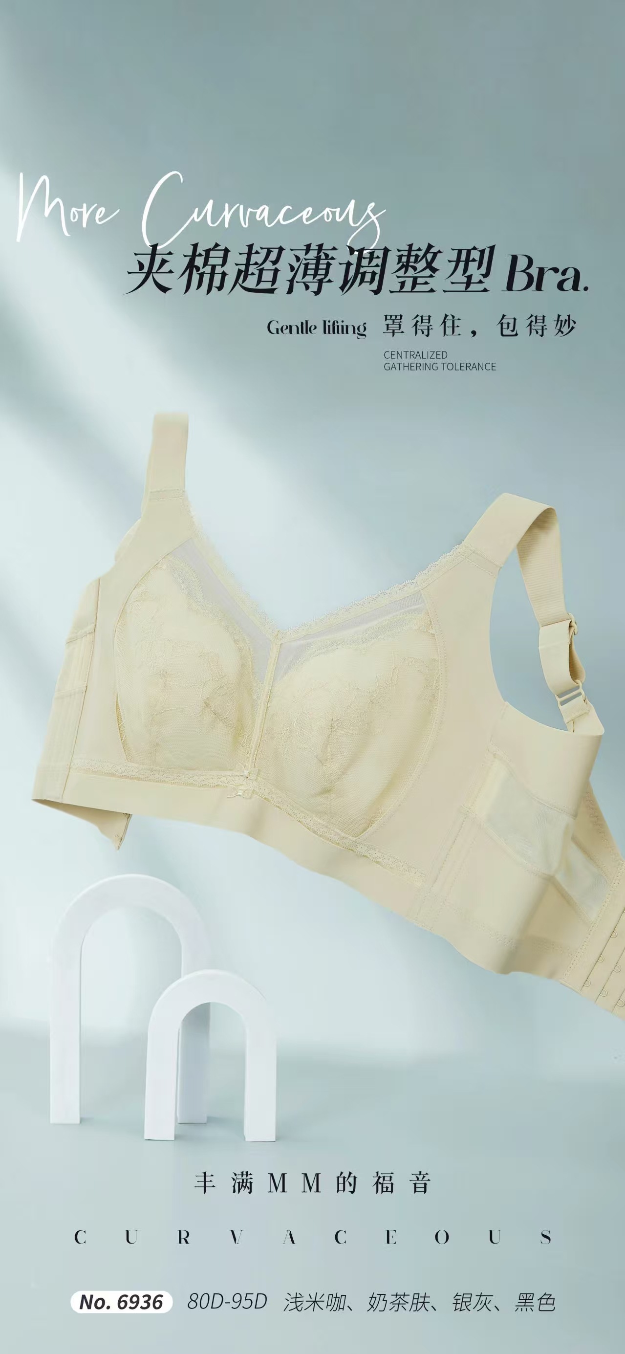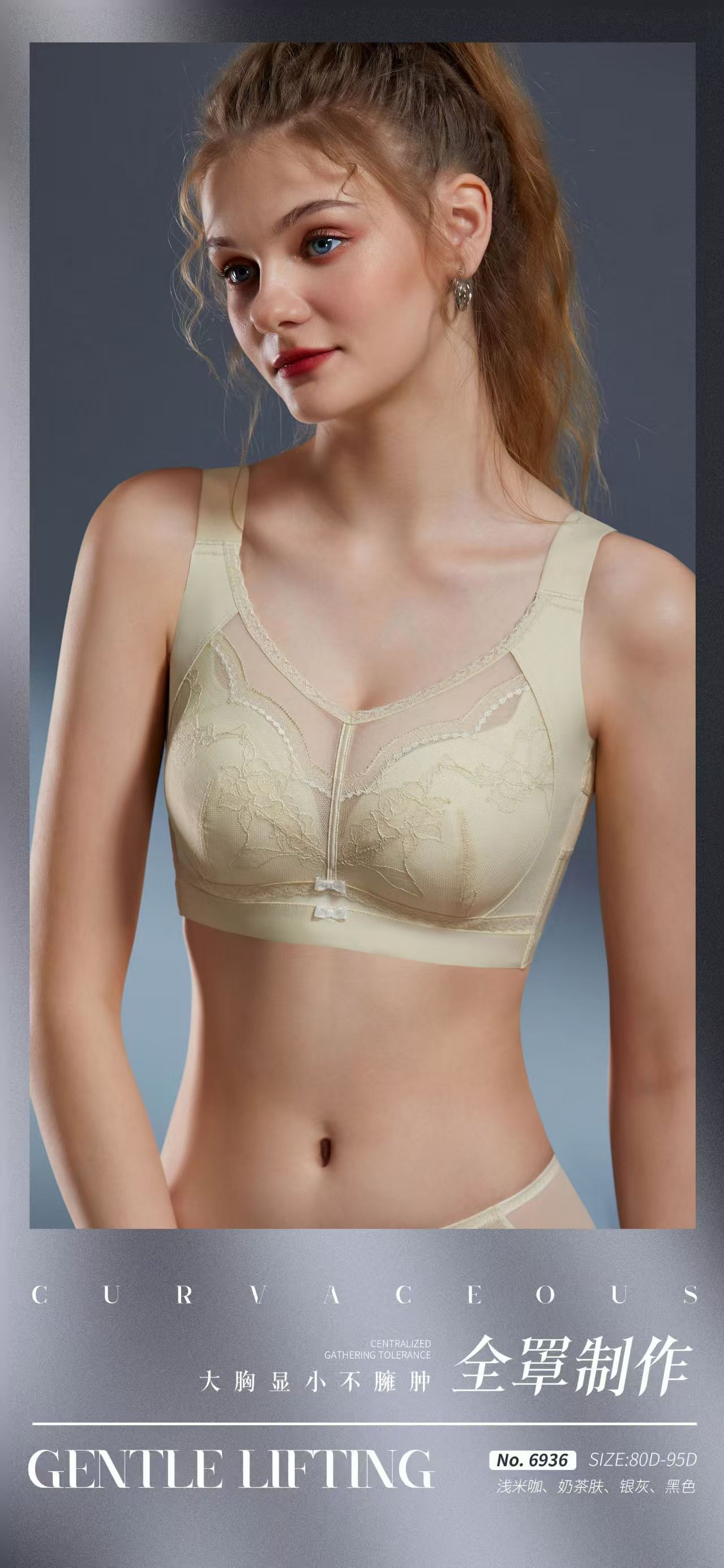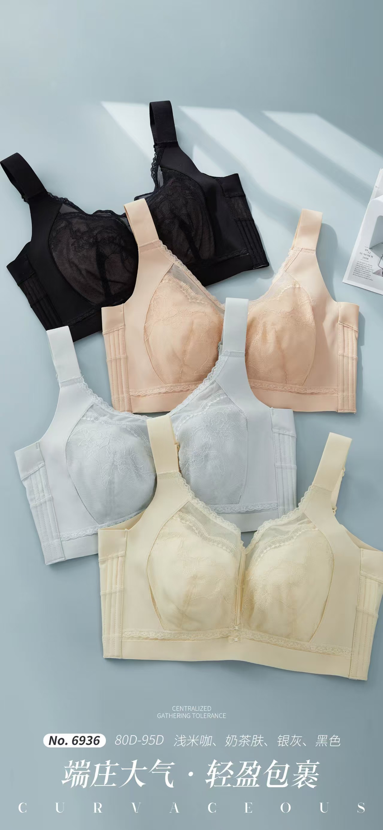 6936 Anjiting 5 가슴 조정 가능한 대형 컵 속옷 초박형 풀 컵 브래지어 스틸 반지스토어 가기