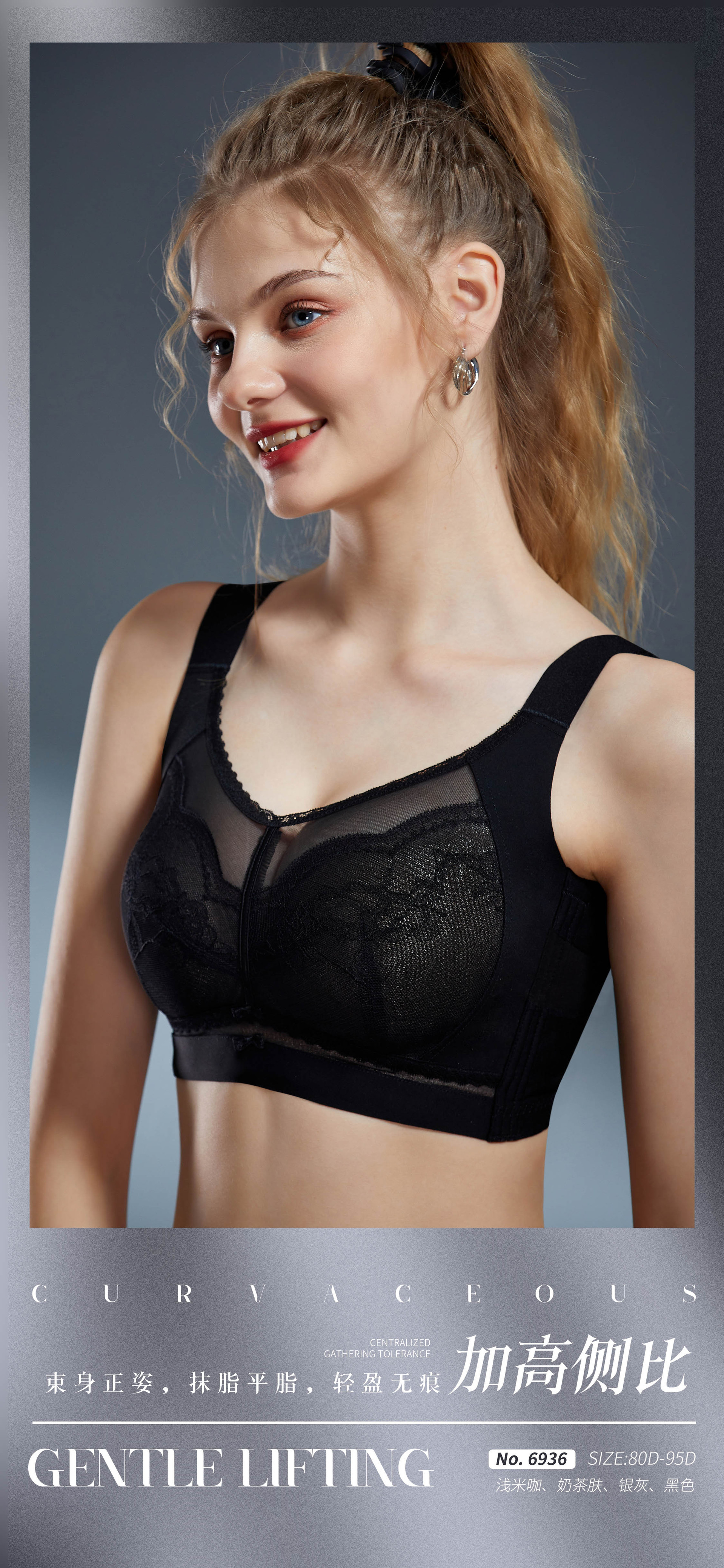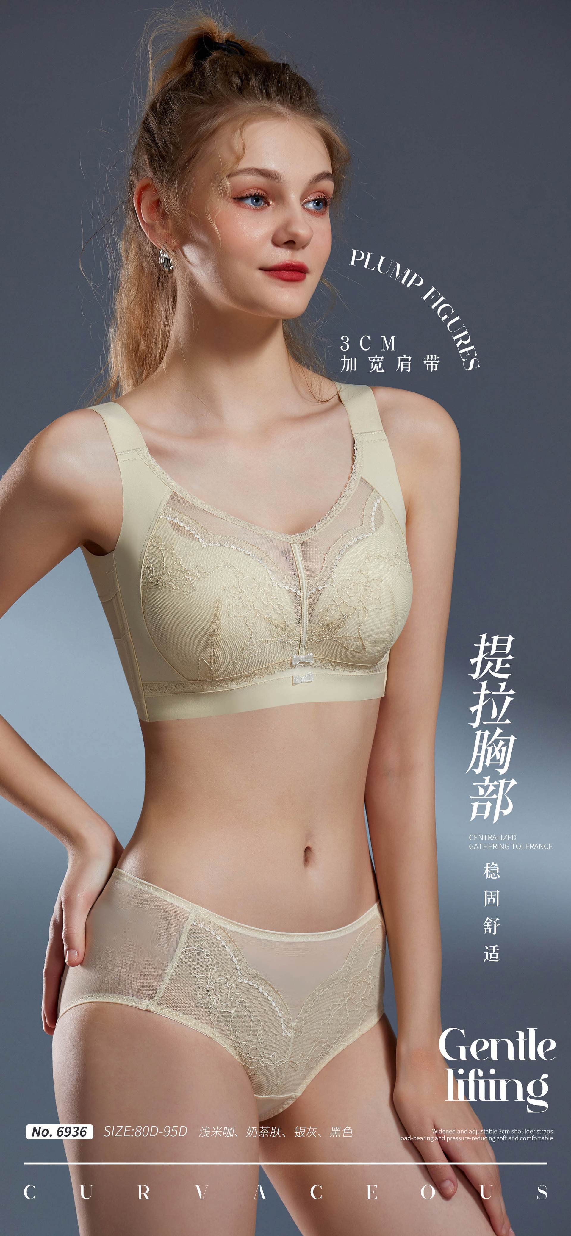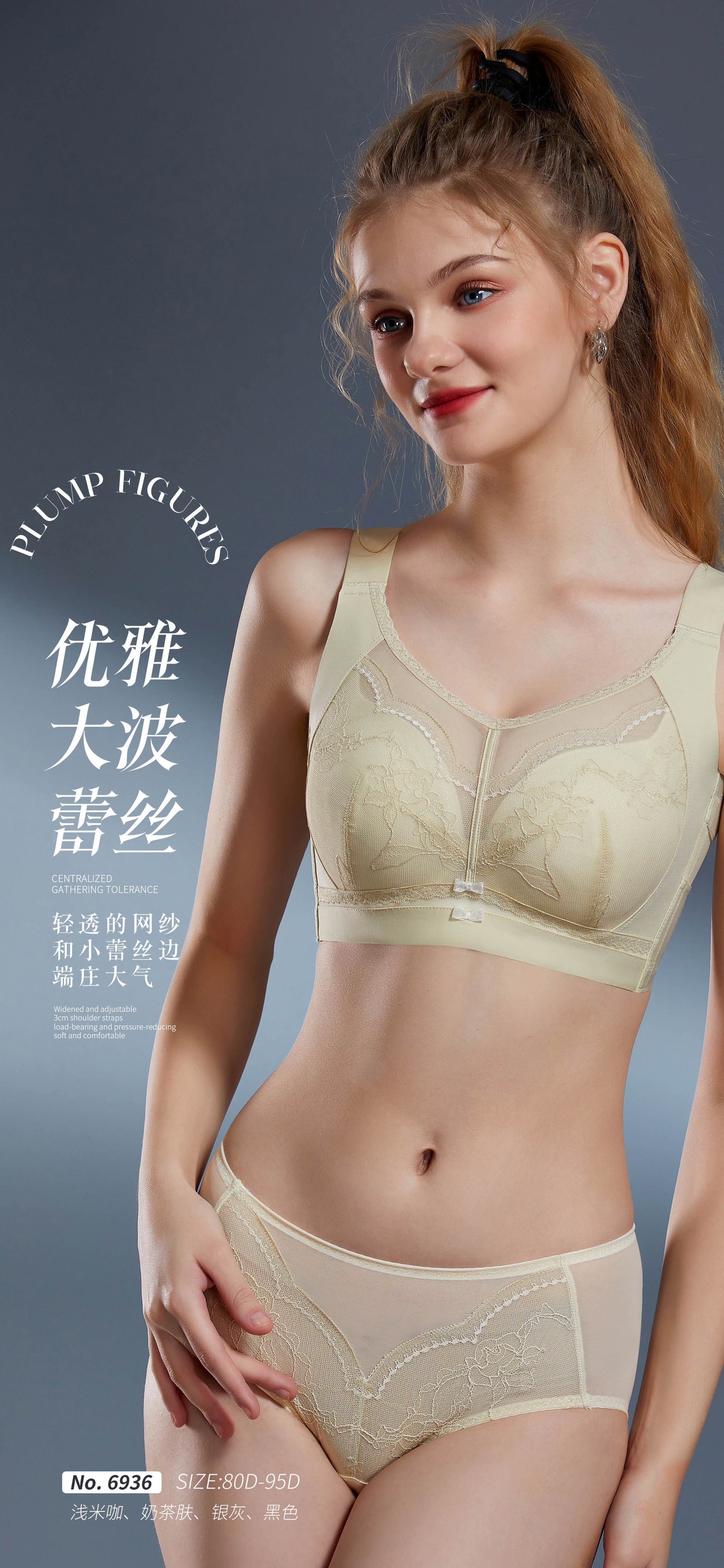 6936 Anjiting 5 가슴 조정 가능한 대형 컵 속옷 초박형 풀 컵 브래지어 스틸 반지스토어 가기