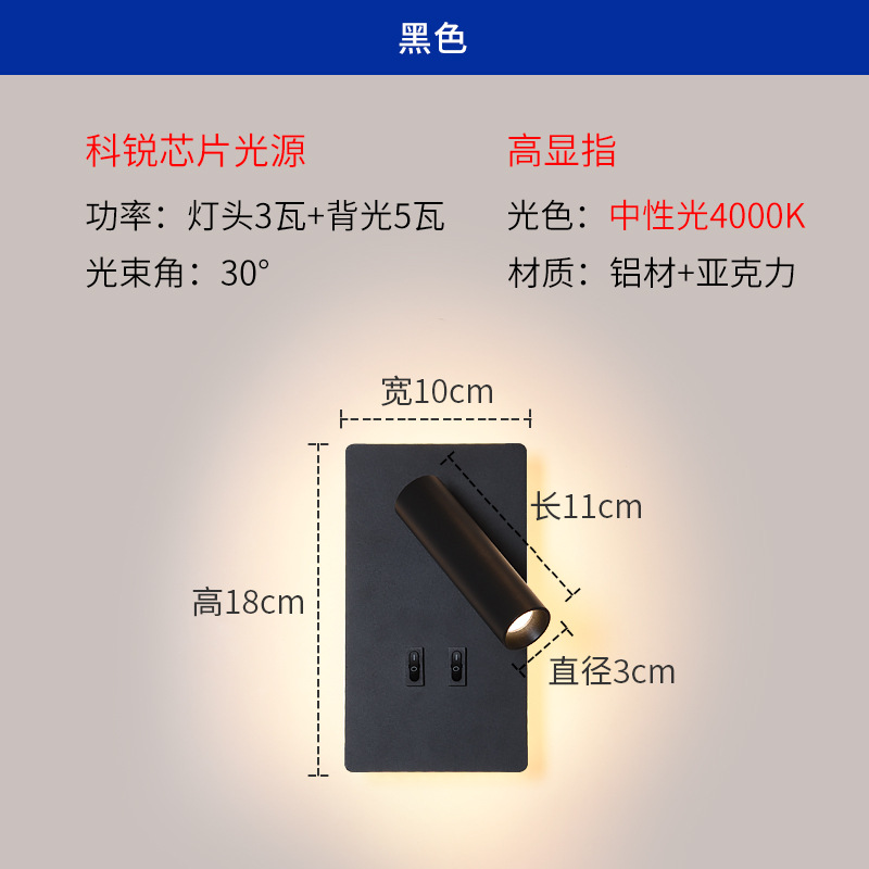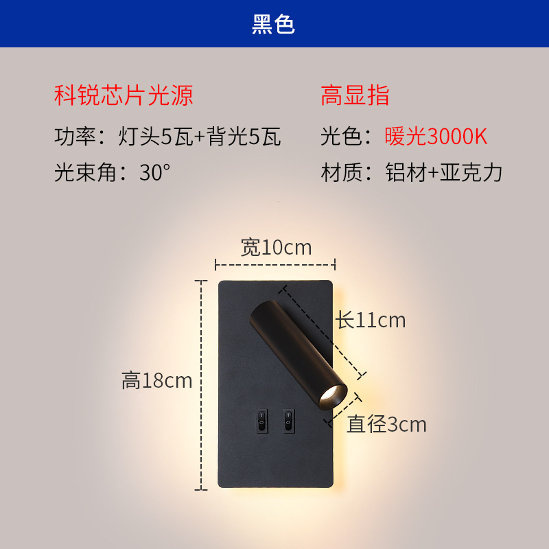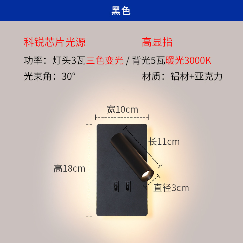 • 검정색/램프 헤드 3W 3색 조광 + 5W 백라이트 따뜻한 조명