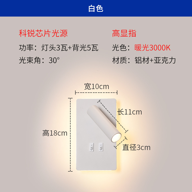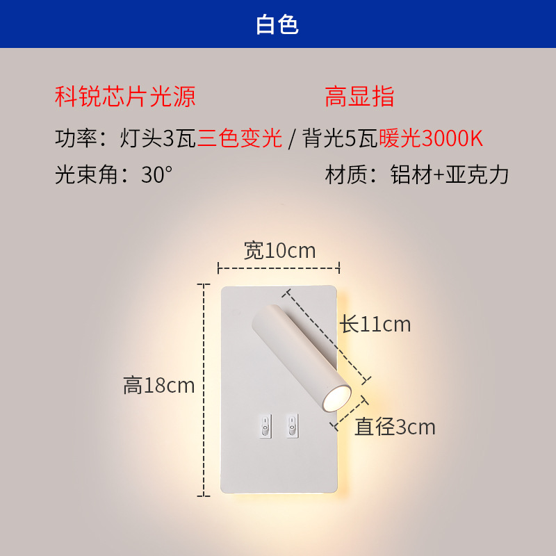 • 흰색/램프 헤드 3W 3색 조광 + 5W 백라이트 따뜻한 조명