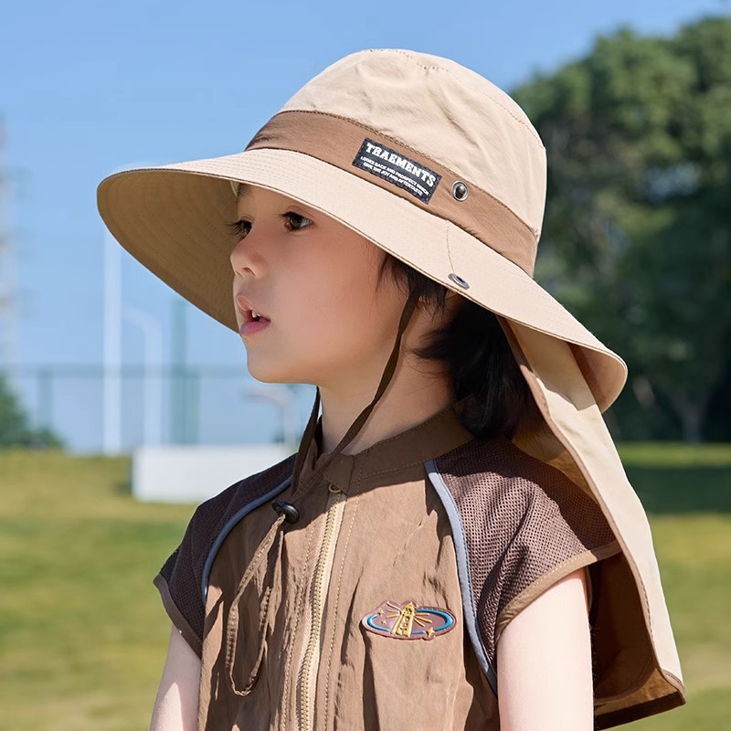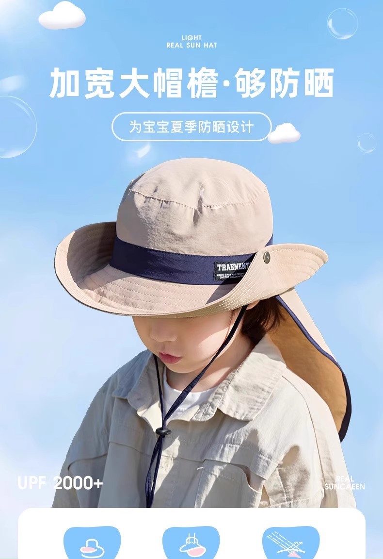 어린이 선 스크린 모자 소년 여름 야외 대형 브림 UV 보호 태양 모자 소녀 등산 목도리 어부 모자