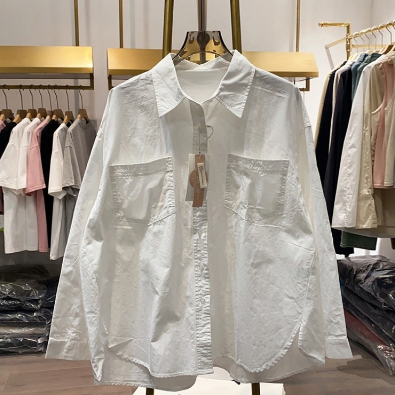면 셔츠 여성 2024 봄과 여름 새로운 느슨한 캐주얼 긴 소매 우아한 흰색 셔츠 여성 스택 패션 탑