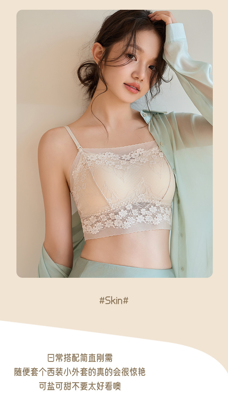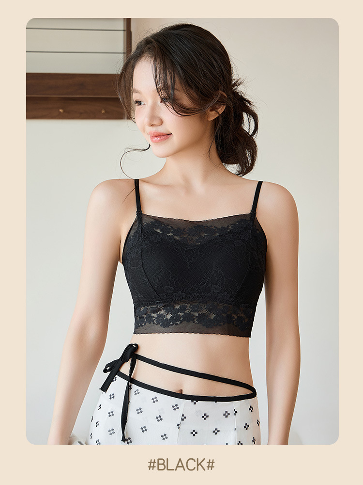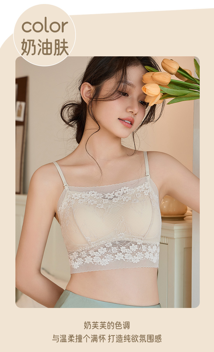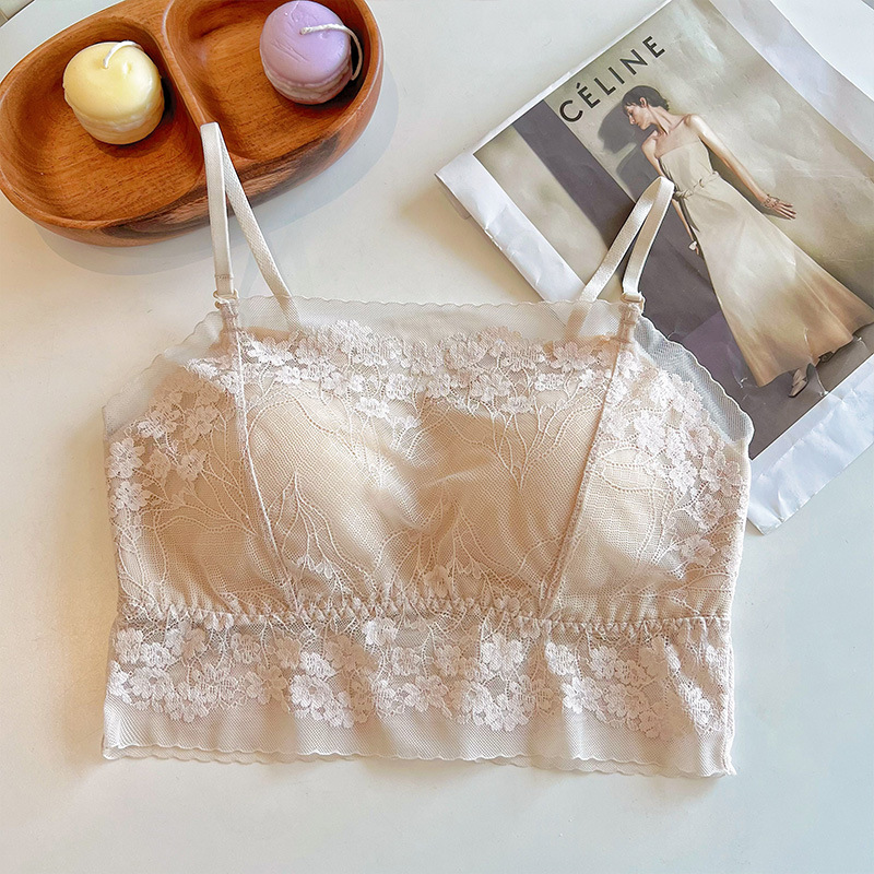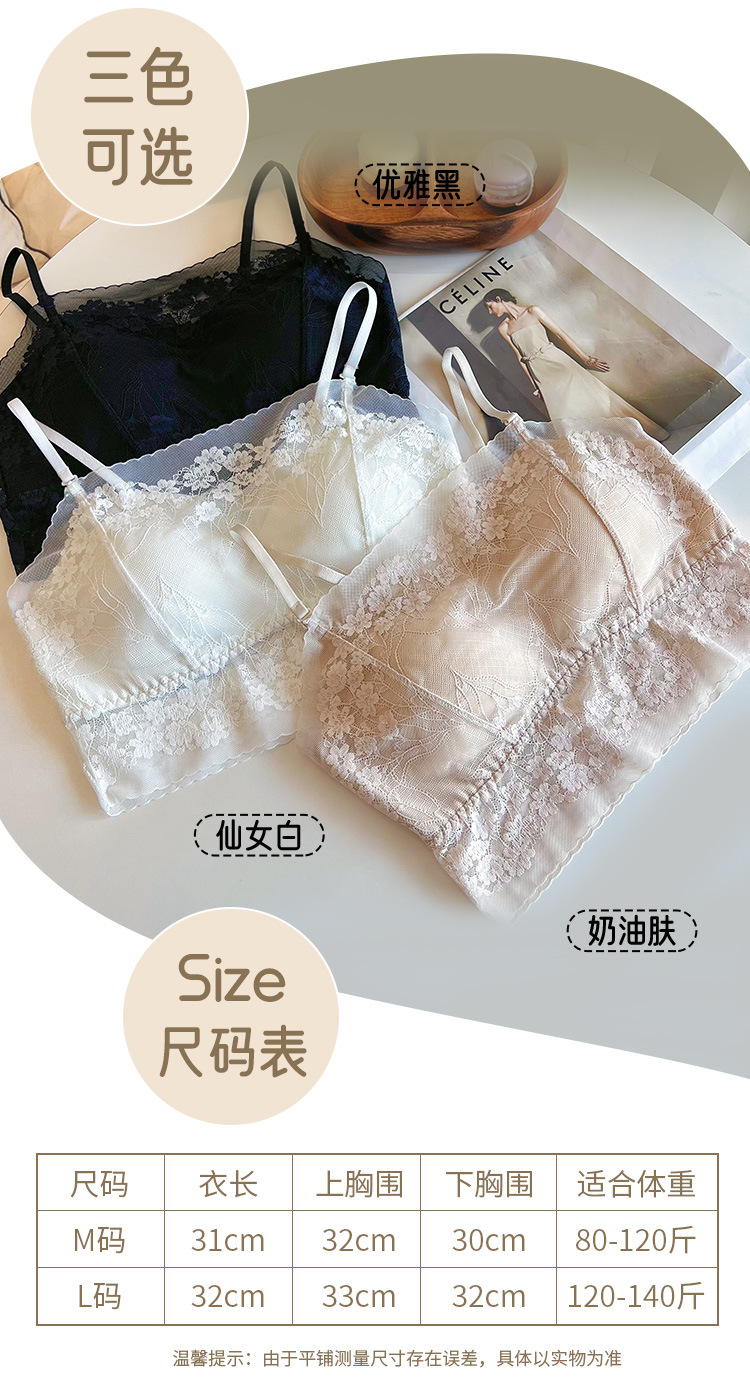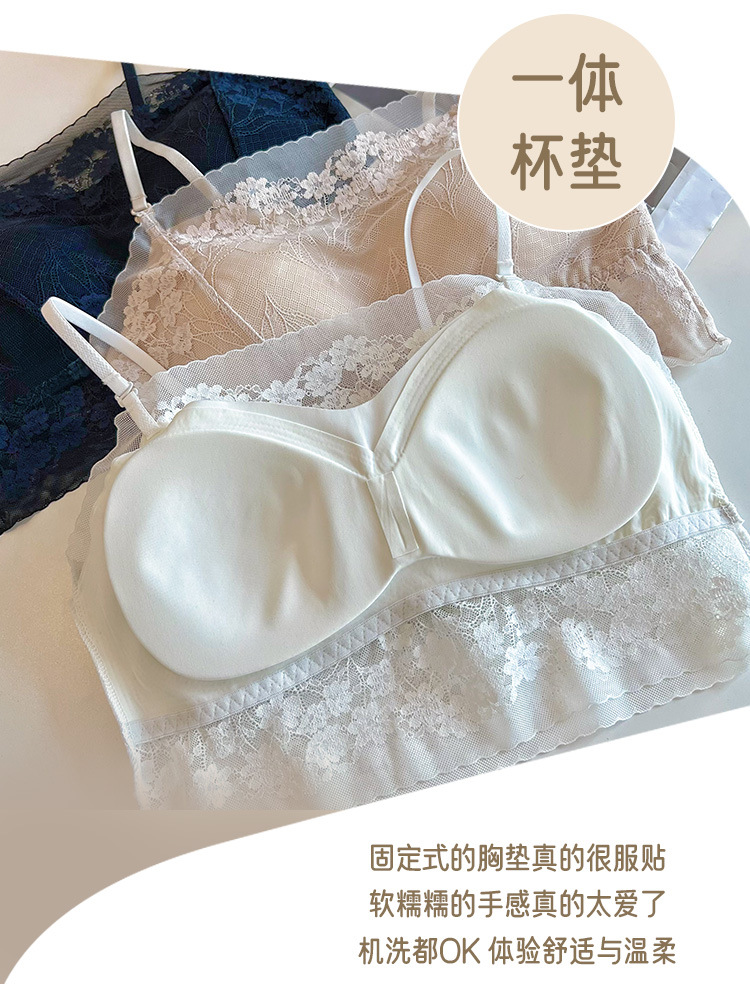 프랑스 스타일 레이스 작은 꽃 슬링 여성 달콤한 스타일 고정 원피스 컵 3 차원 스타일 비 테두리 속옷