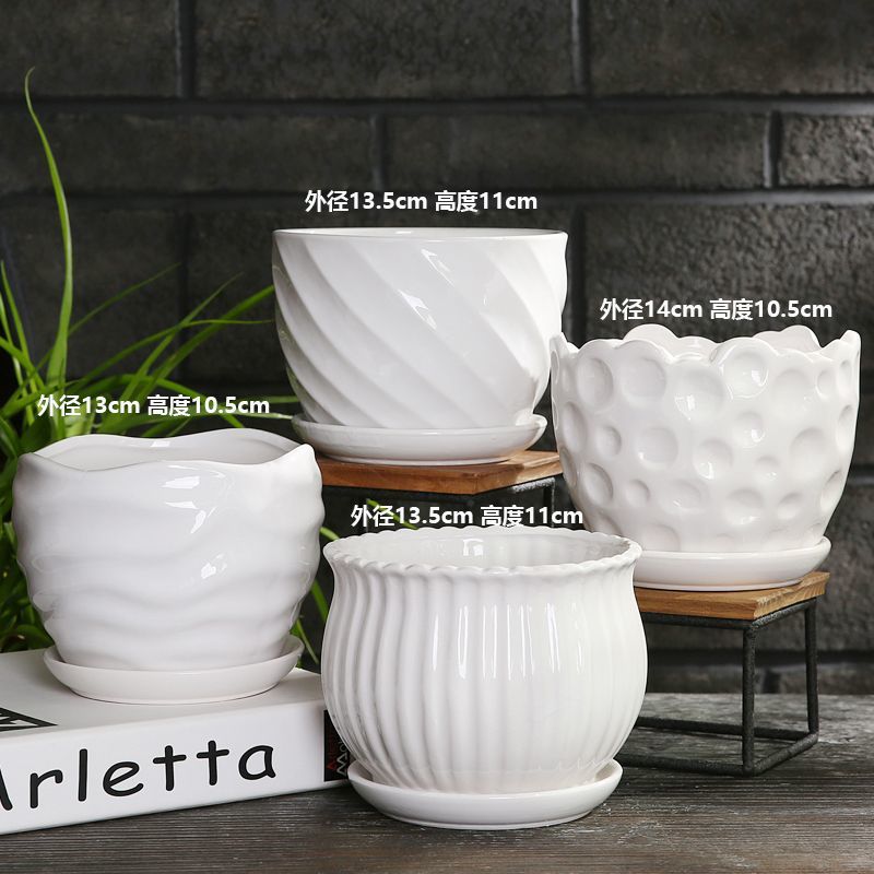 새로운 세라믹 꽃 냄비 특별 정리 트레이 화이트 간단한 녹색 식물 Chloroidopsis 도매 가구 호접기스토어 가기