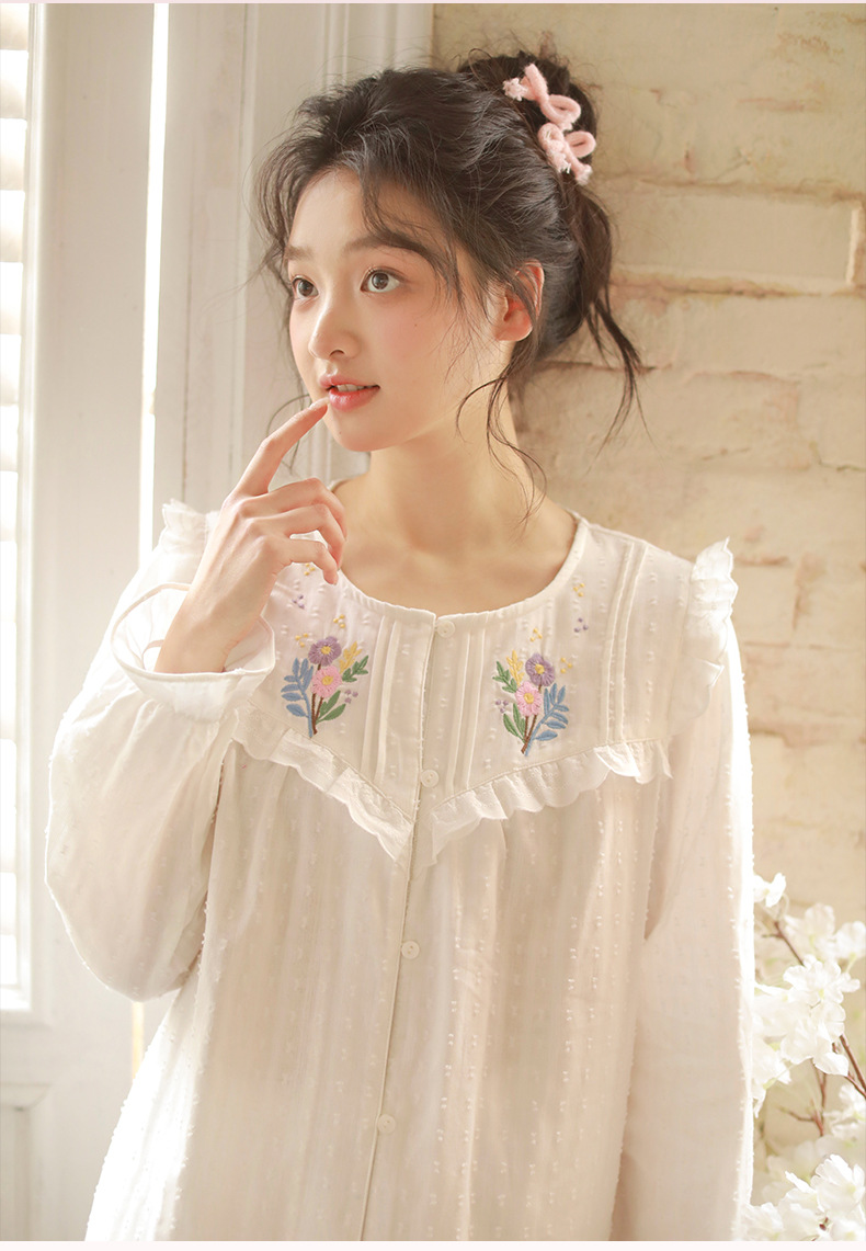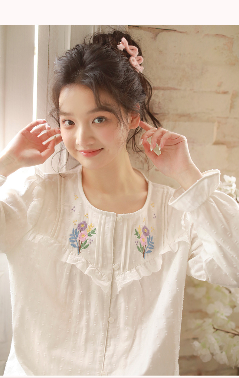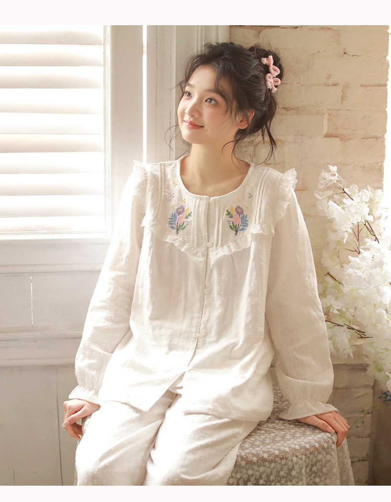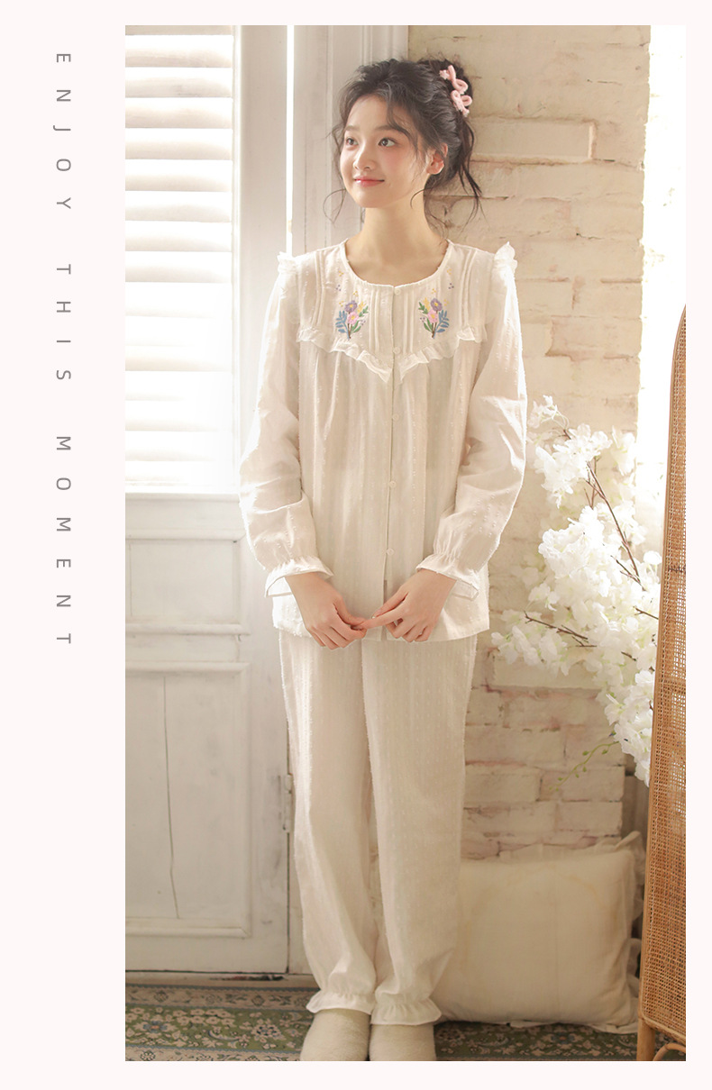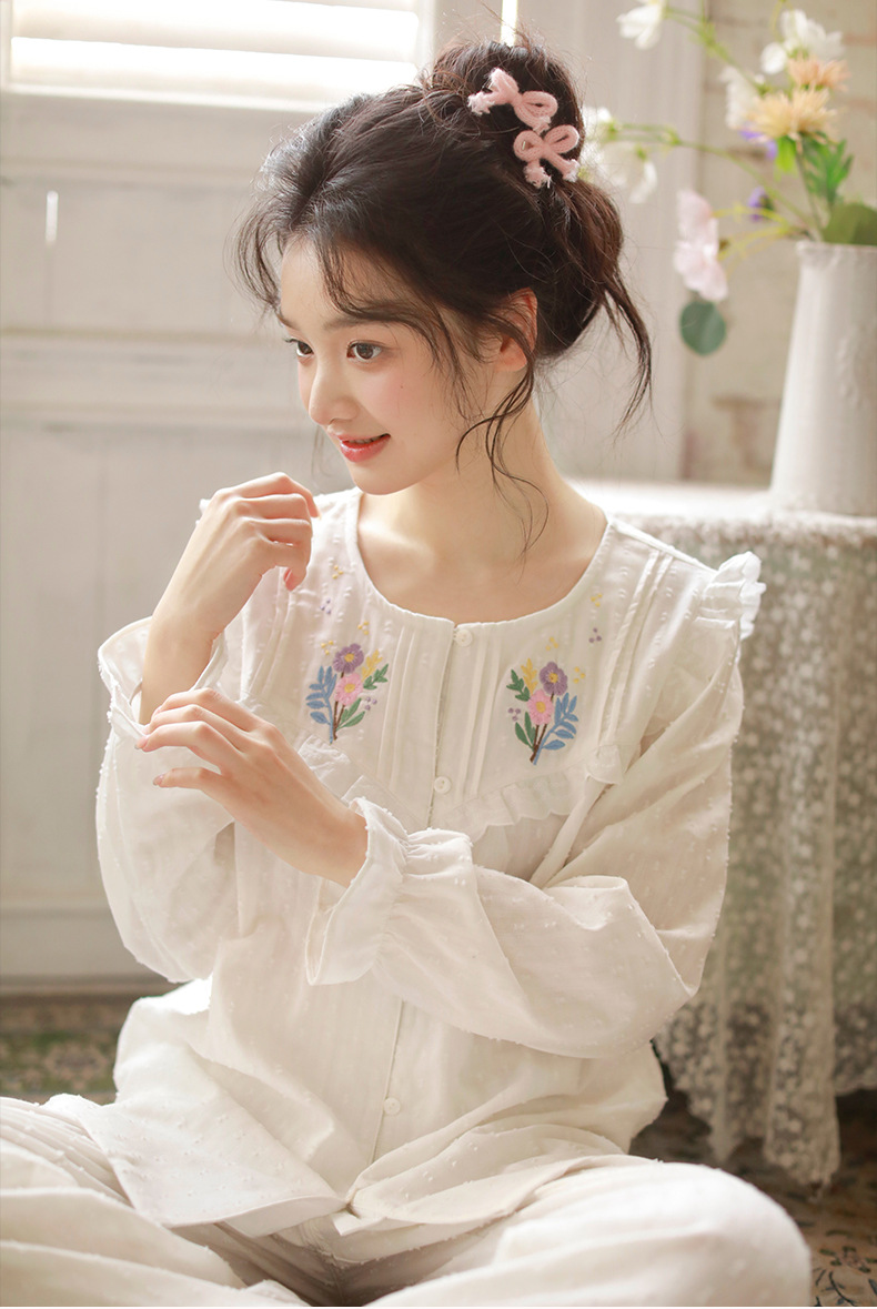 봄과 가을 새로운 잠옷 여성 짠 면 긴 소매 달콤한 귀여운 패션 공주 스타일 세트 외부 옷스토어 가기
