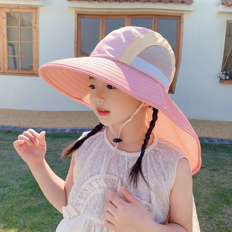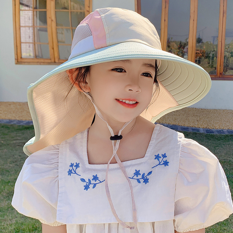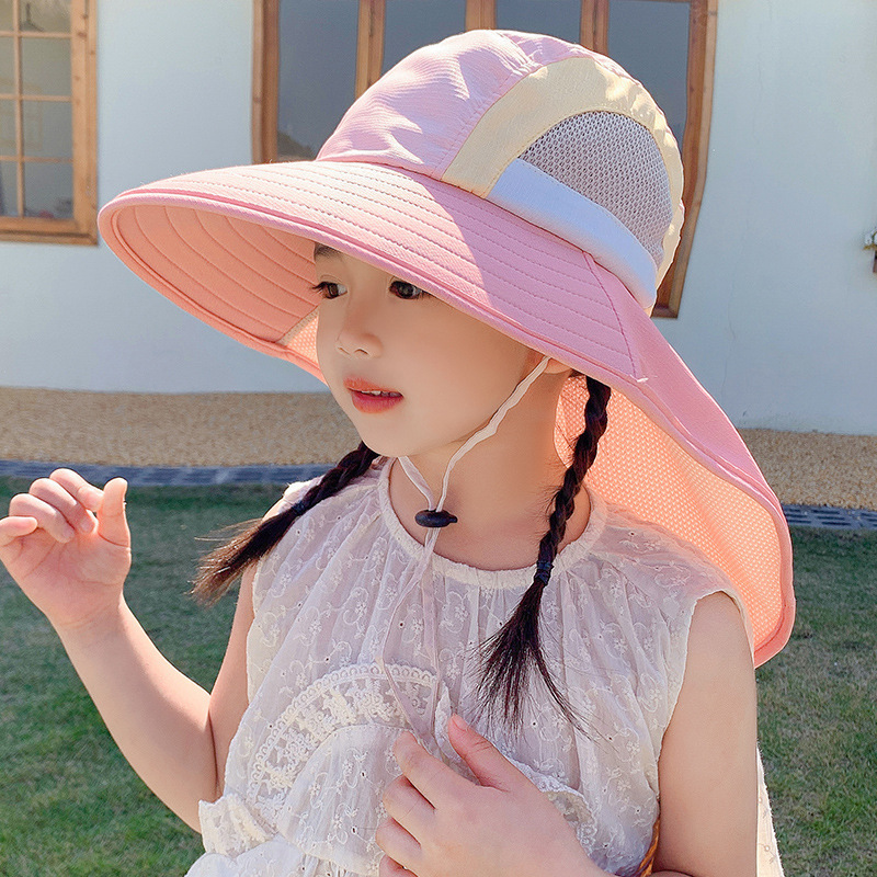 어린이 모자 2025 새로운 안티-UV 목도리 햇살 모자 해변 소년 소녀 여름 선 스크린 모자 큰 브림