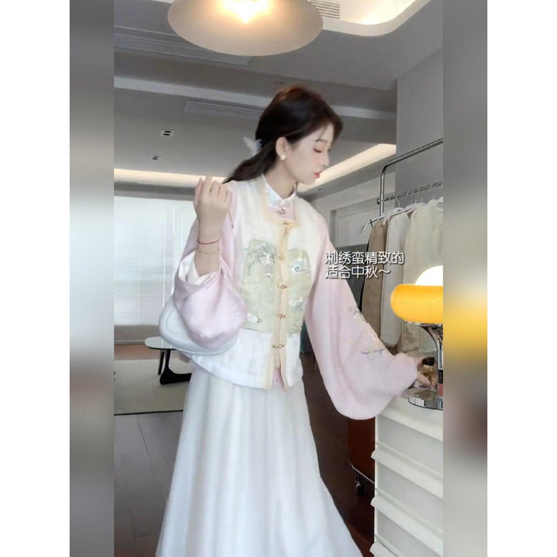 플러스 사이즈 통통한 새로운 중국 스타일 국가 스타일 세트 개선 된 한푸 탑 새로운 스타일 블라우스 조끼 스커트 3 종 세트스토어 가기