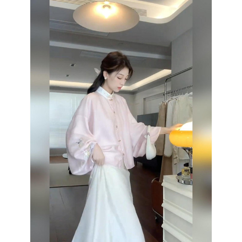 플러스 사이즈 통통한 새로운 중국 스타일 국가 스타일 세트 개선 된 한푸 탑 새로운 스타일 블라우스 조끼 스커트 3 종 세트