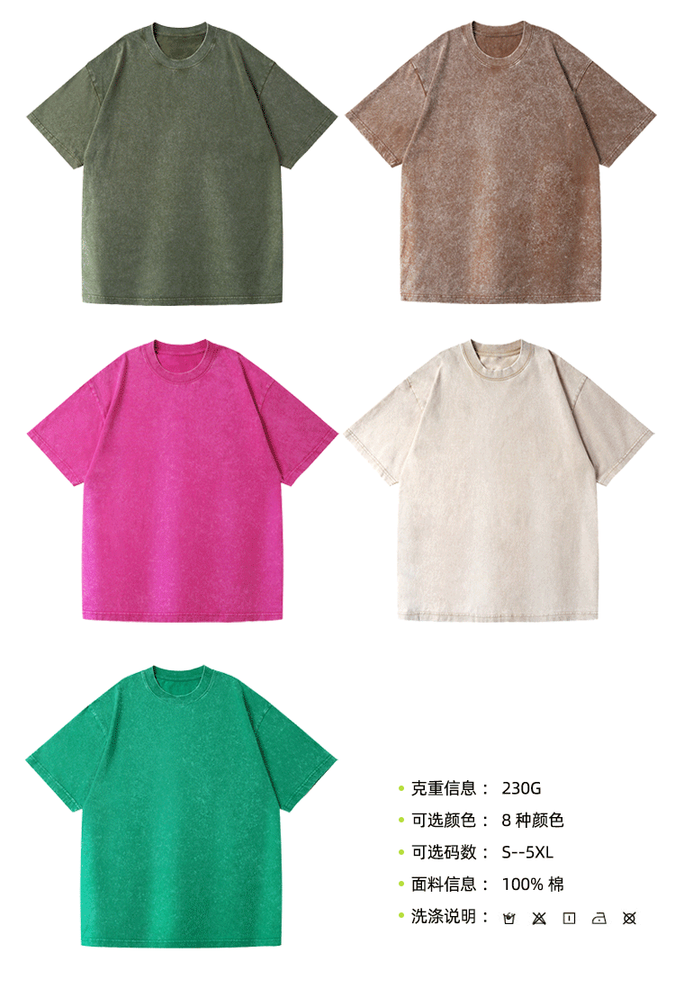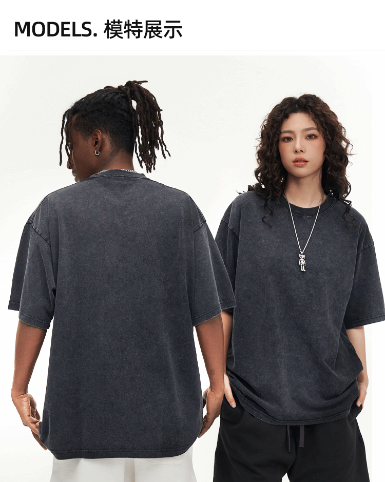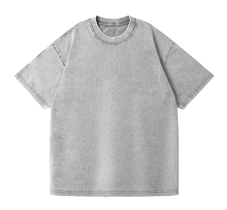 워시드 230g 순면 티셔츠, 눌어붙은 눈송이, 헤비급 남녀공용 루즈한 라운드넥 오프숄더 크로스보더 광고 셔츠스토어 가기