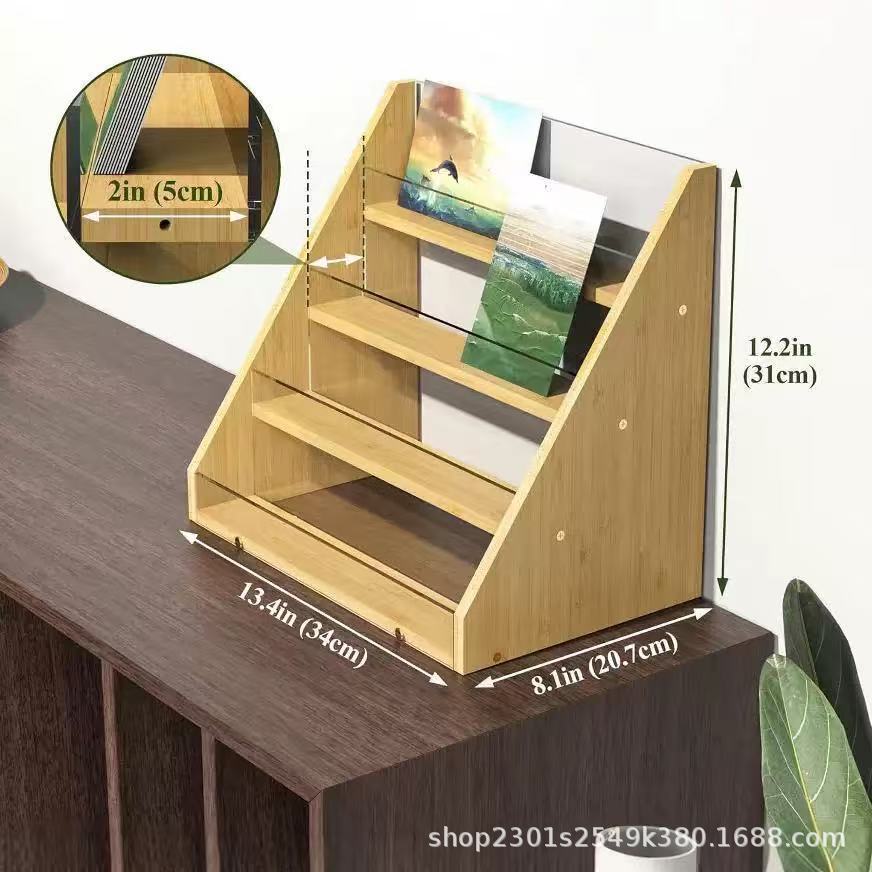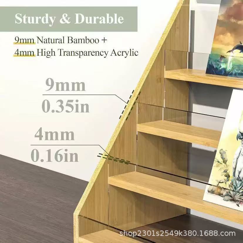 데스크탑 스토리지 랙 아크릴 인사말 카드 디스플레이 랙 스테핑 엽서 스토리지 랙 나무 카드 스토리지 랙