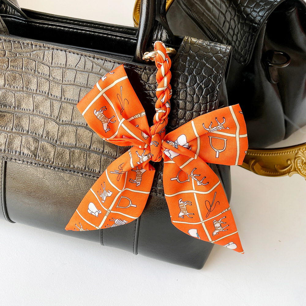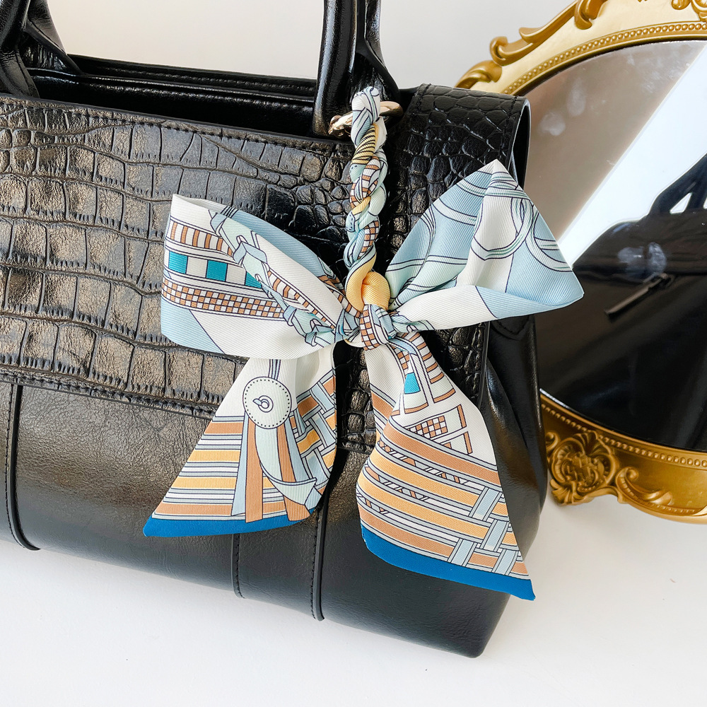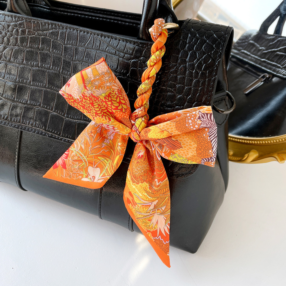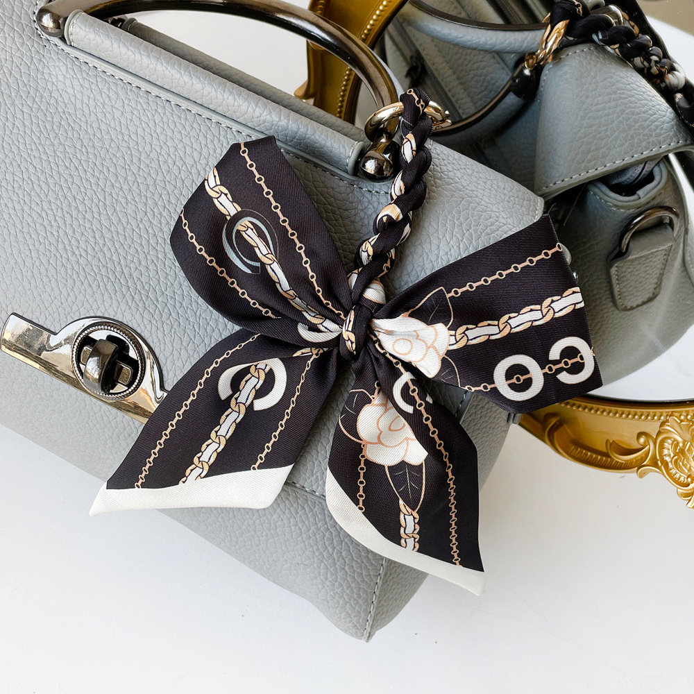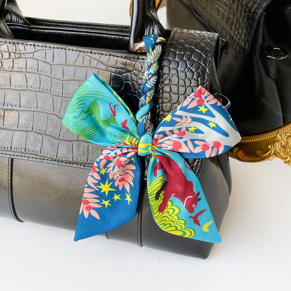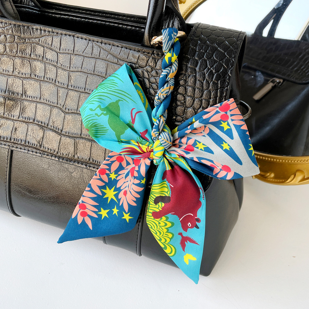 매달린 가방 작은 리본 고급 트윌 실크 스카프 인쇄 넥타이 가방 작은 실크 스카프 트렌드 나비 긴 장식 실크 스카프 도매