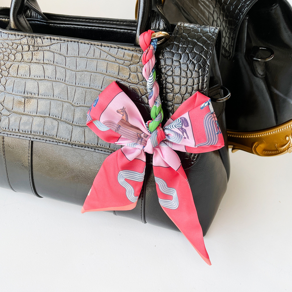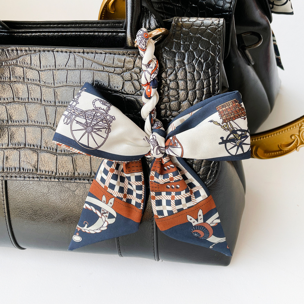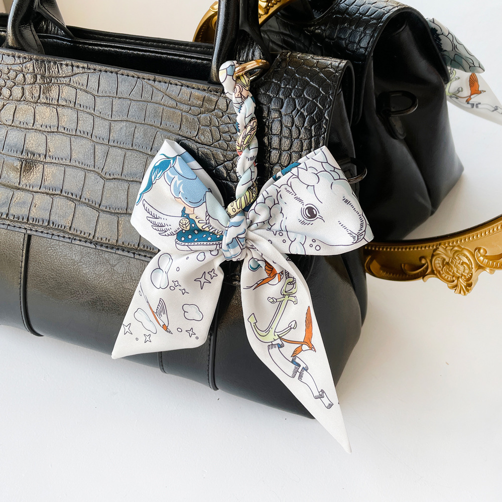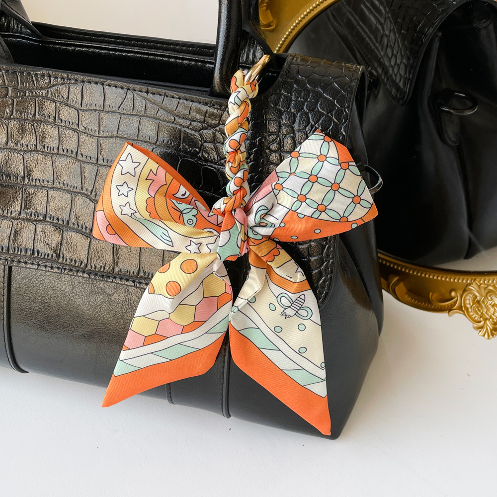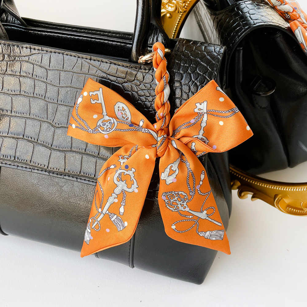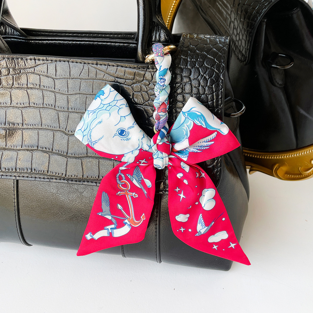 매달린 가방 작은 리본 고급 트윌 실크 스카프 인쇄 넥타이 가방 작은 실크 스카프 트렌드 나비 긴 장식 실크 스카프 도매