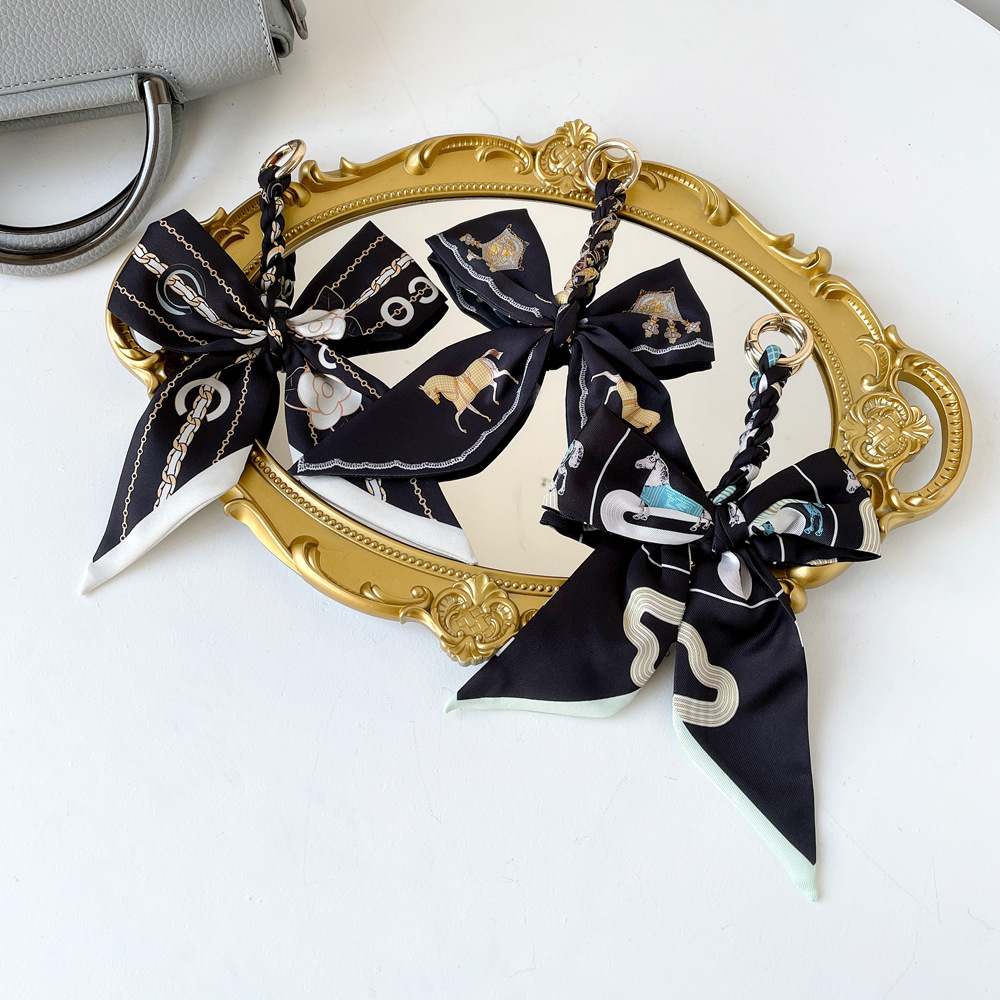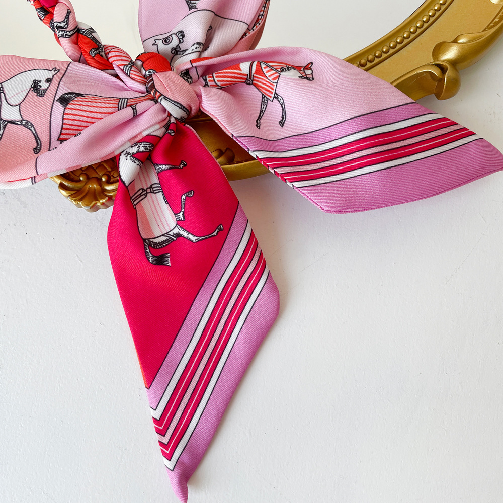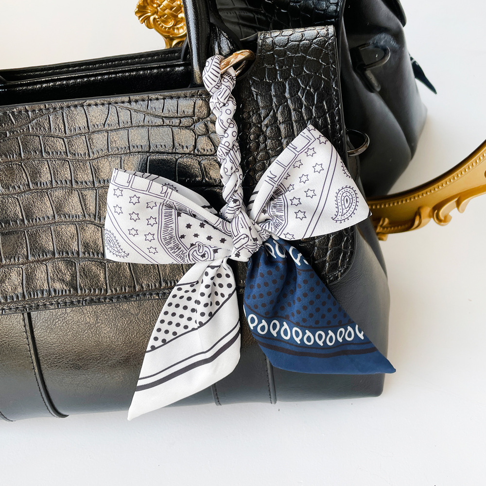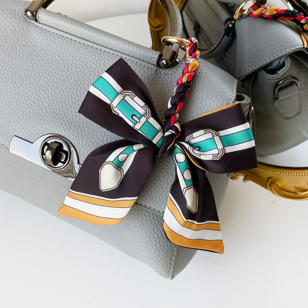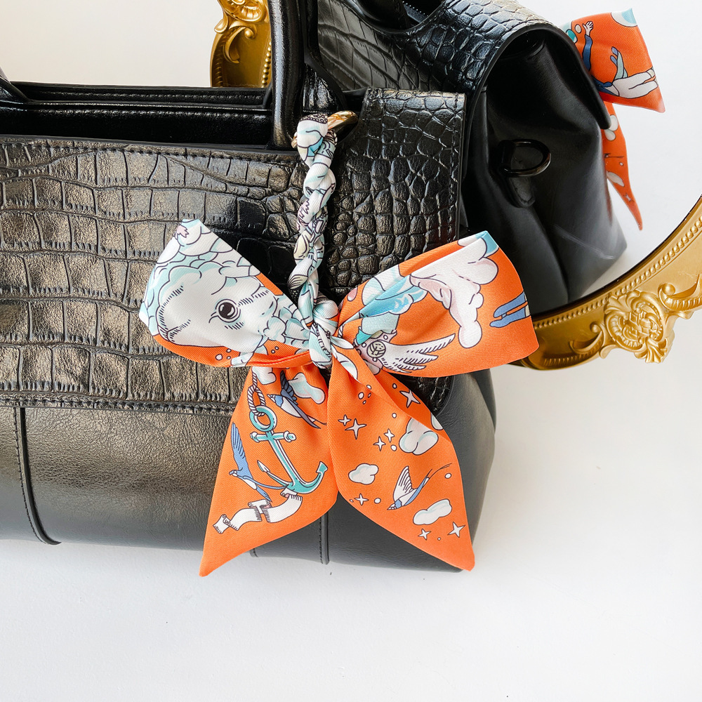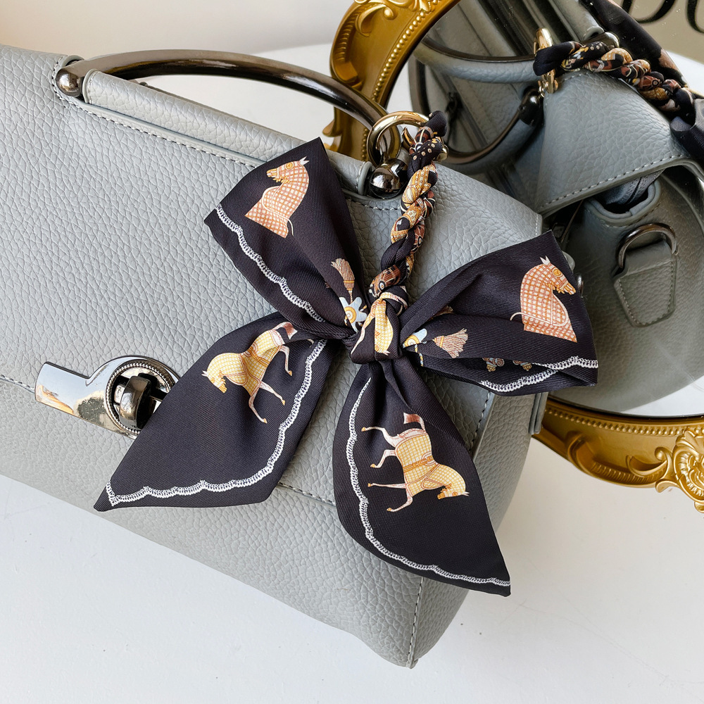 매달린 가방 작은 리본 고급 트윌 실크 스카프 인쇄 넥타이 가방 작은 실크 스카프 트렌드 나비 긴 장식 실크 스카프 도매