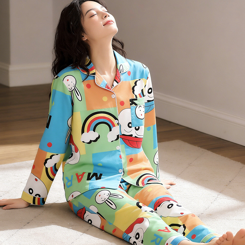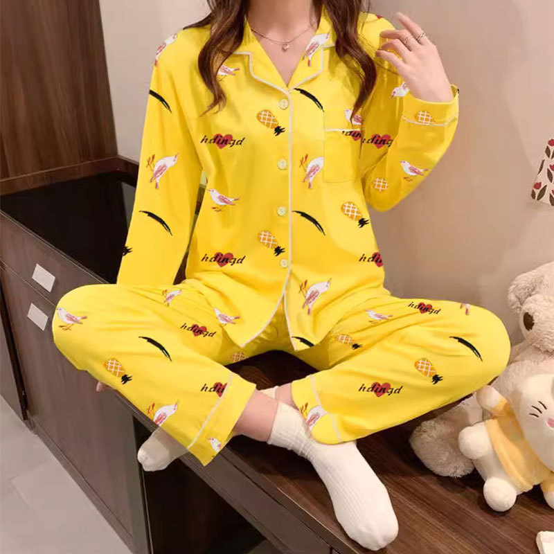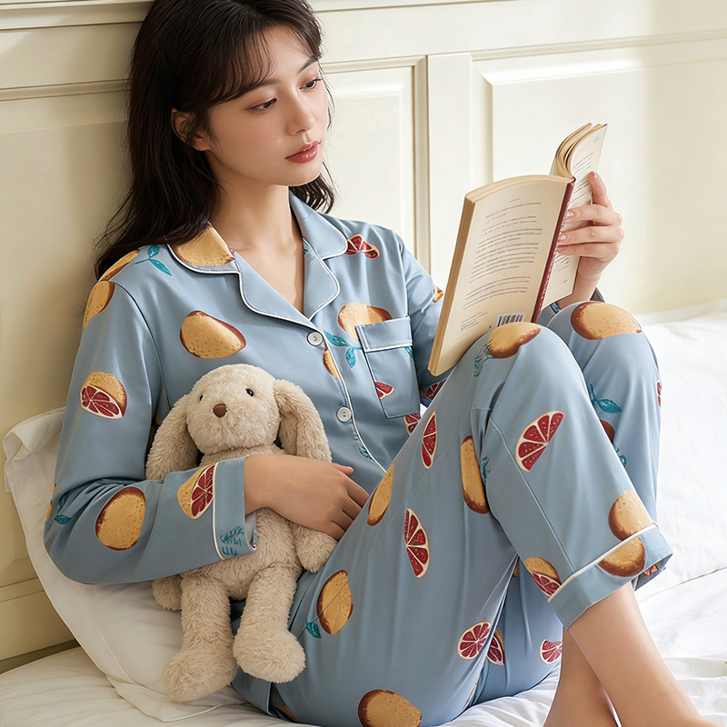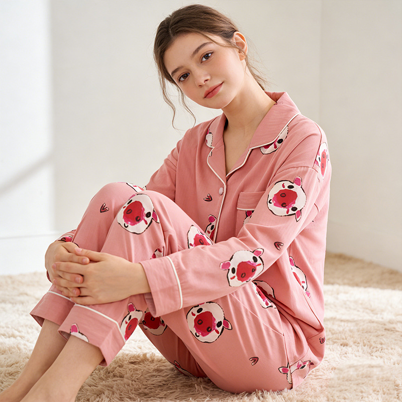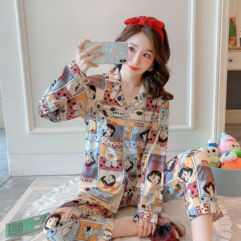 유럽풍 고급 여성용 봄가을 잠옷 세트, 프렌치 스타일 루즈핏 여성 홈웨어, 공장 도매스토어 가기