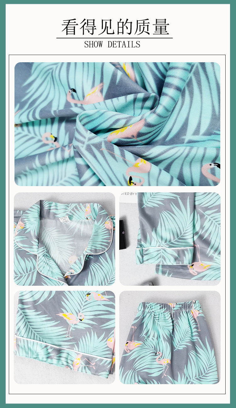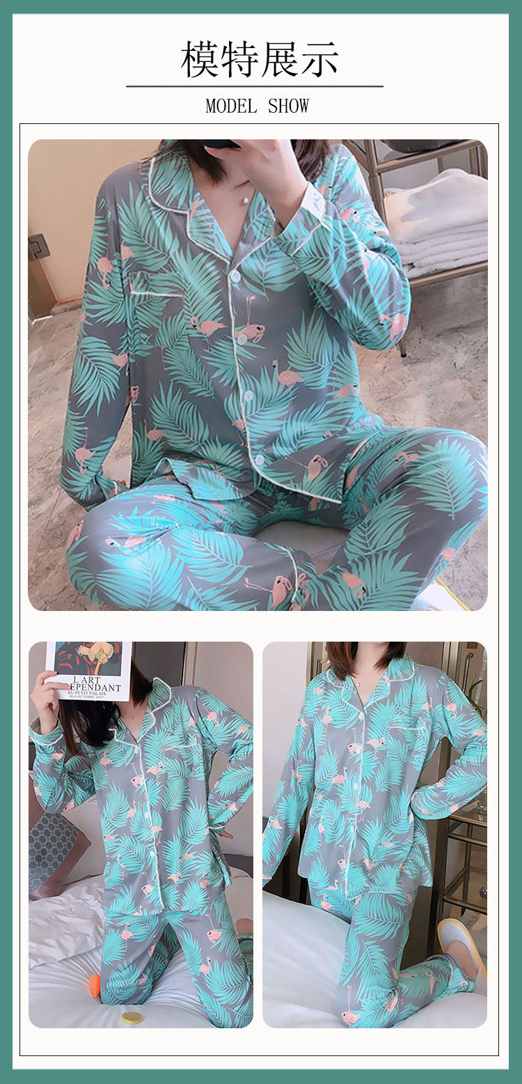 • 가디건 밀크 실크 160 S 그린 리프 플라밍고 롱 세트