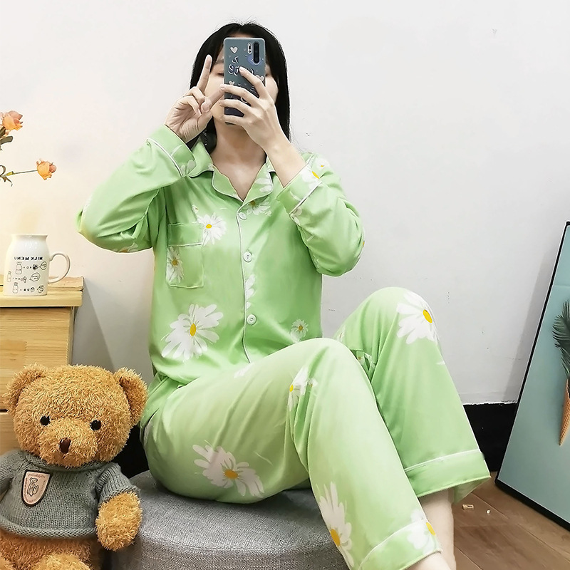 • 가디건 밀크 실크 160 S 그린 국화 롱 세트