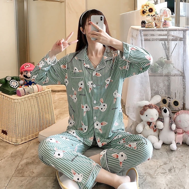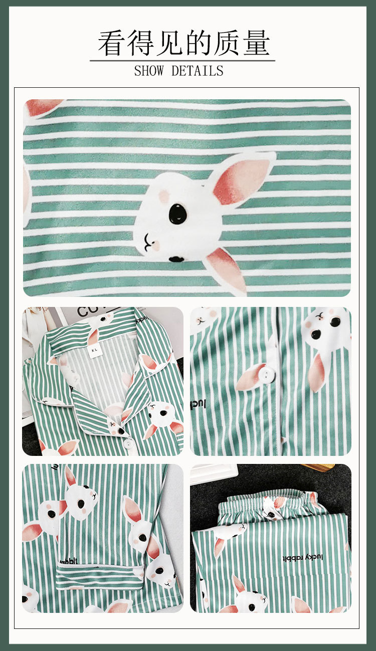• 가디건 밀크 실크 160 S 스트라이프 그린 토끼 롱 세트