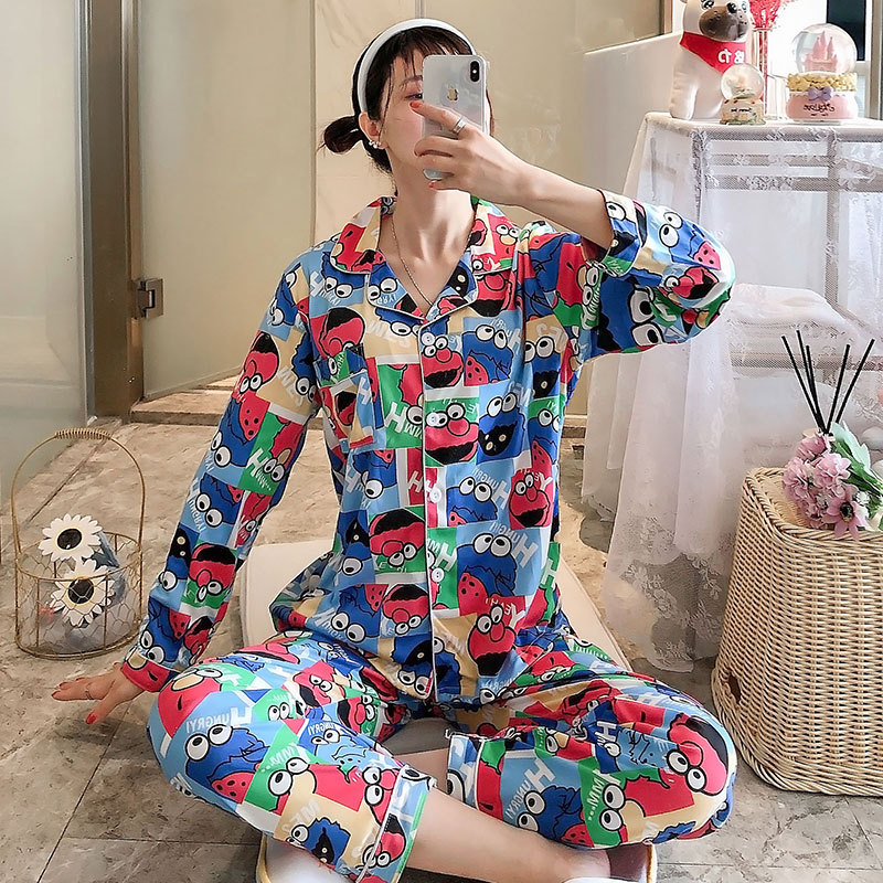 • 가디건 밀크 실크 160 S 레드 & 블루 세서미 스트리트 롱 세트