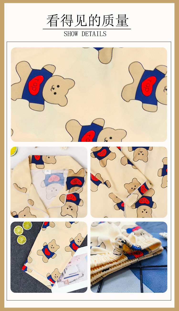 • 가디건 밀크 실크 160 S 미색 곰돌이 롱 세트