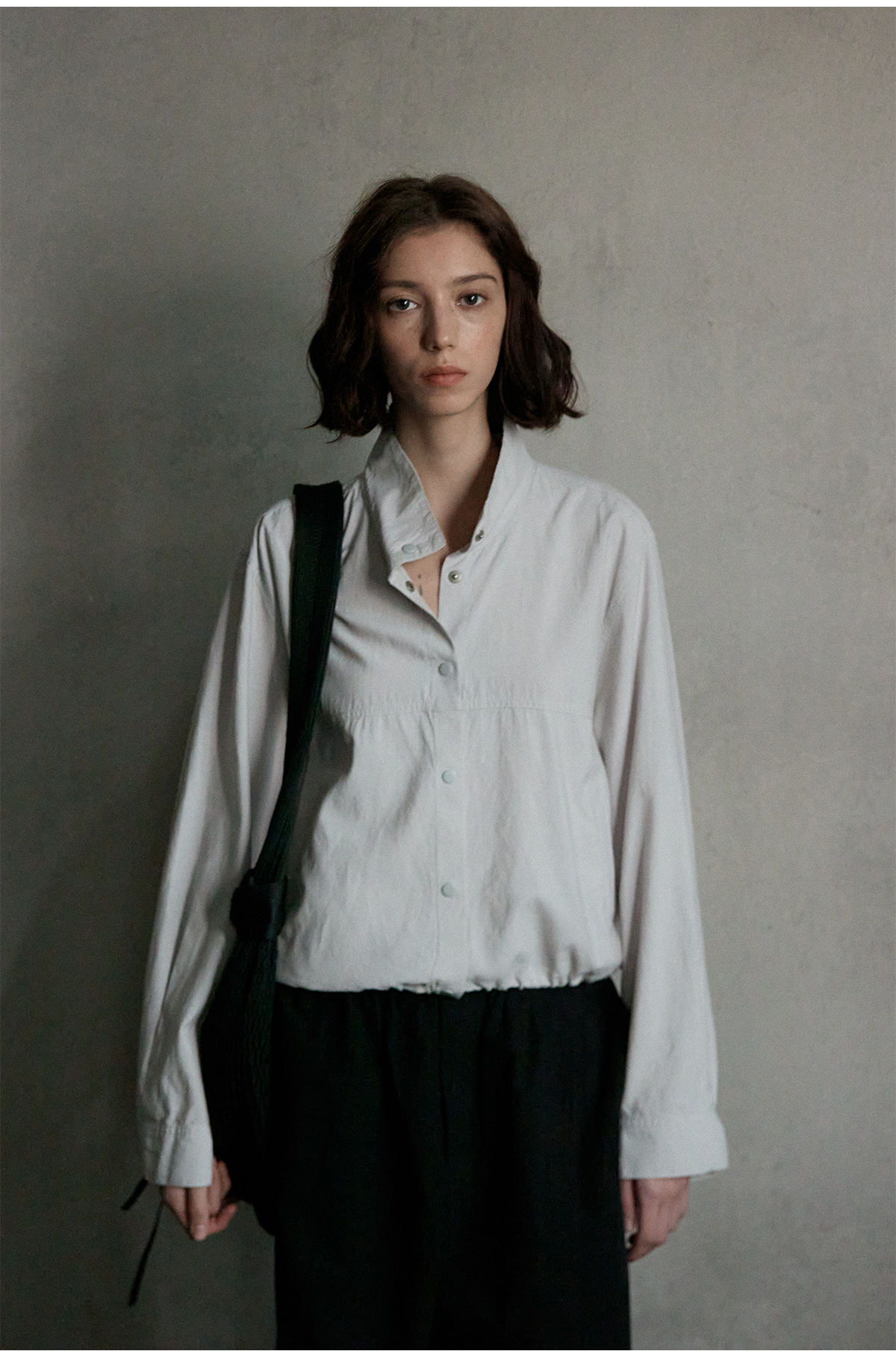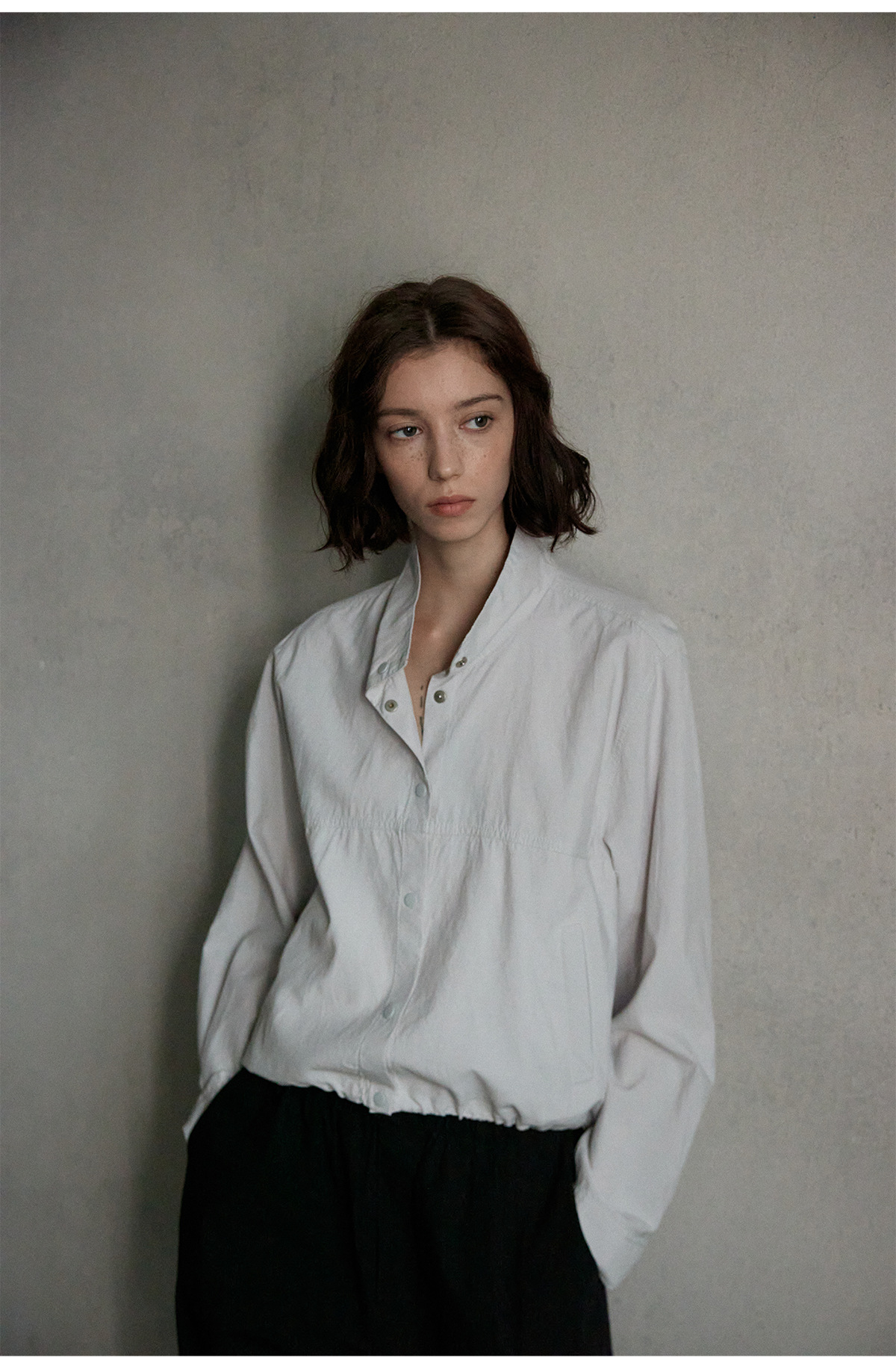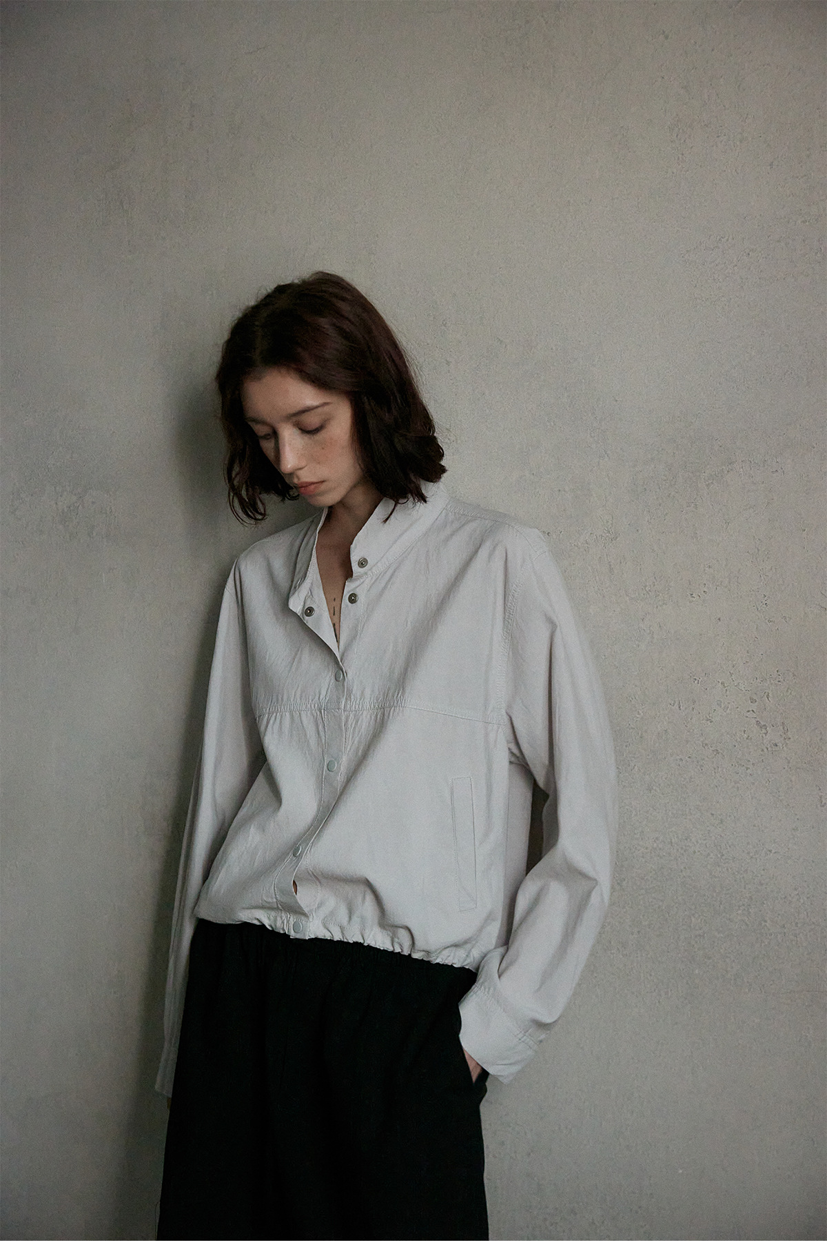 [지식] 린넨 슬림 스탠드 칼라 재킷 탑 여성 봄 신작 심플 다용도 통근 재킷 M7348