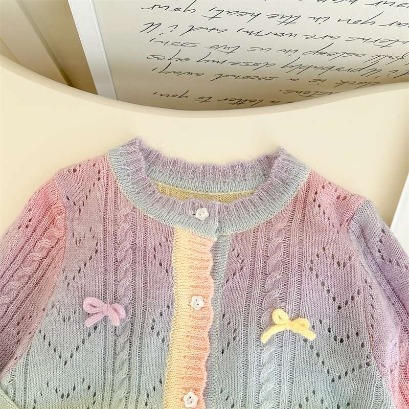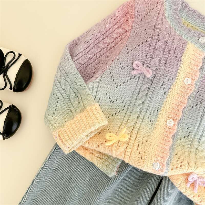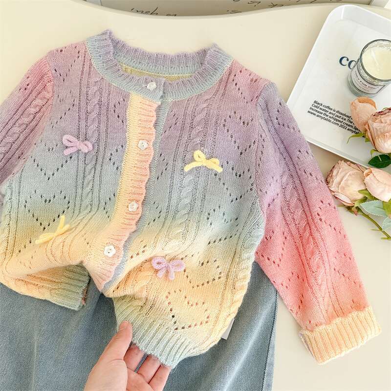 Tongxingyuan 소녀 스웨터 봄 새로운 베이비 카디건 코트 스웨터 그라디언트 스웨터 청바지 세트스토어 가기