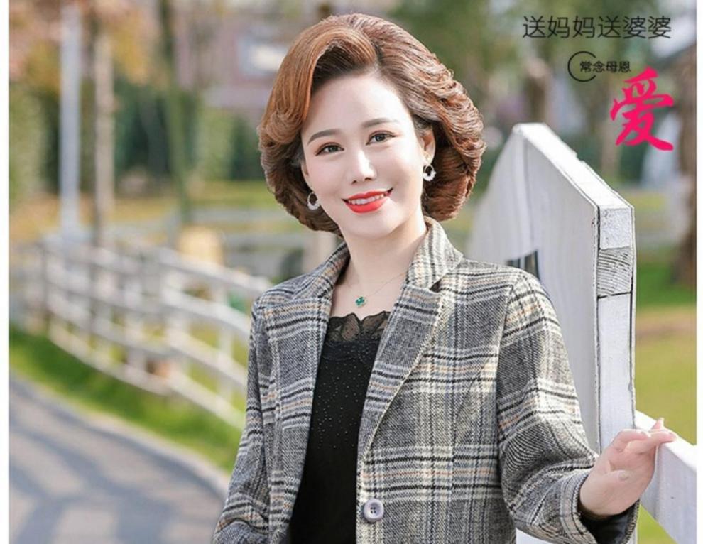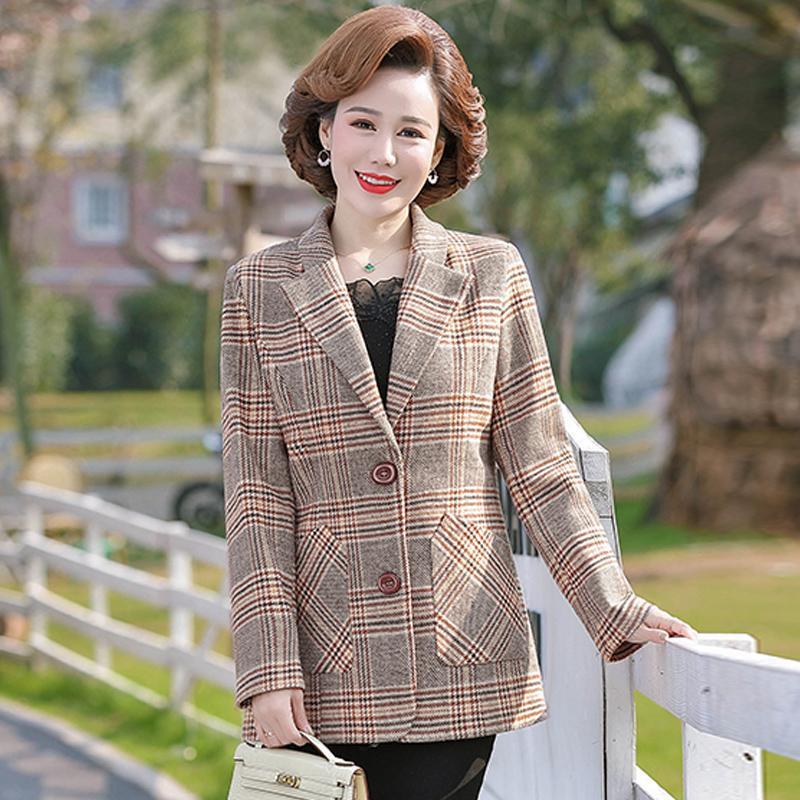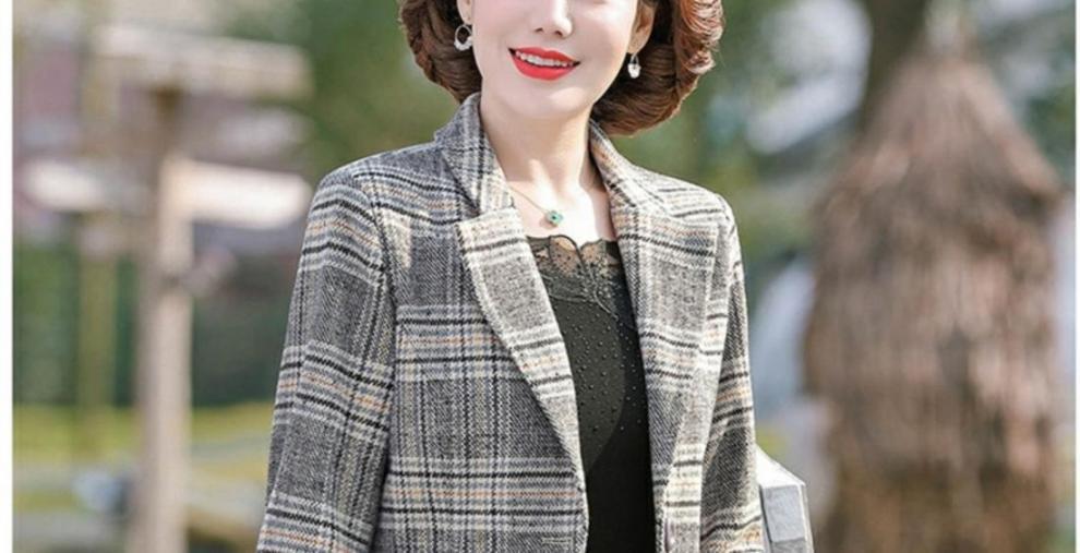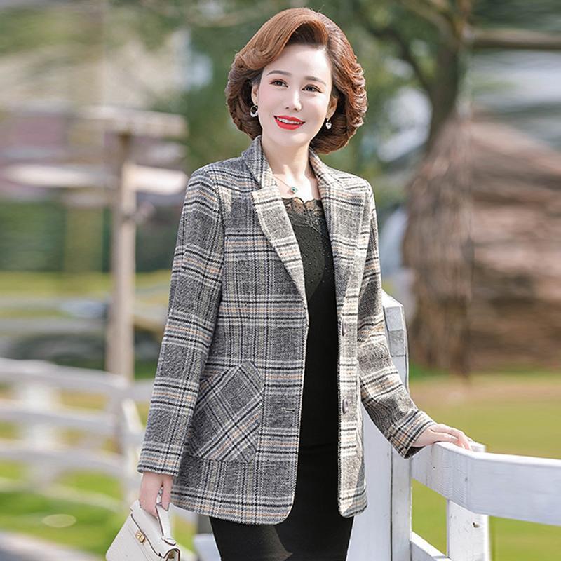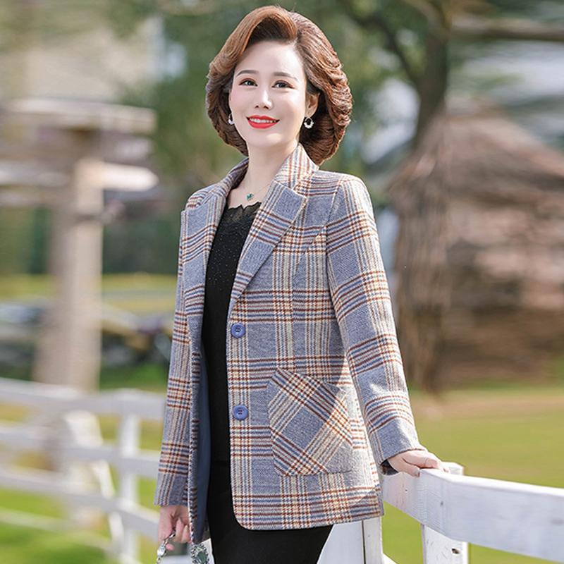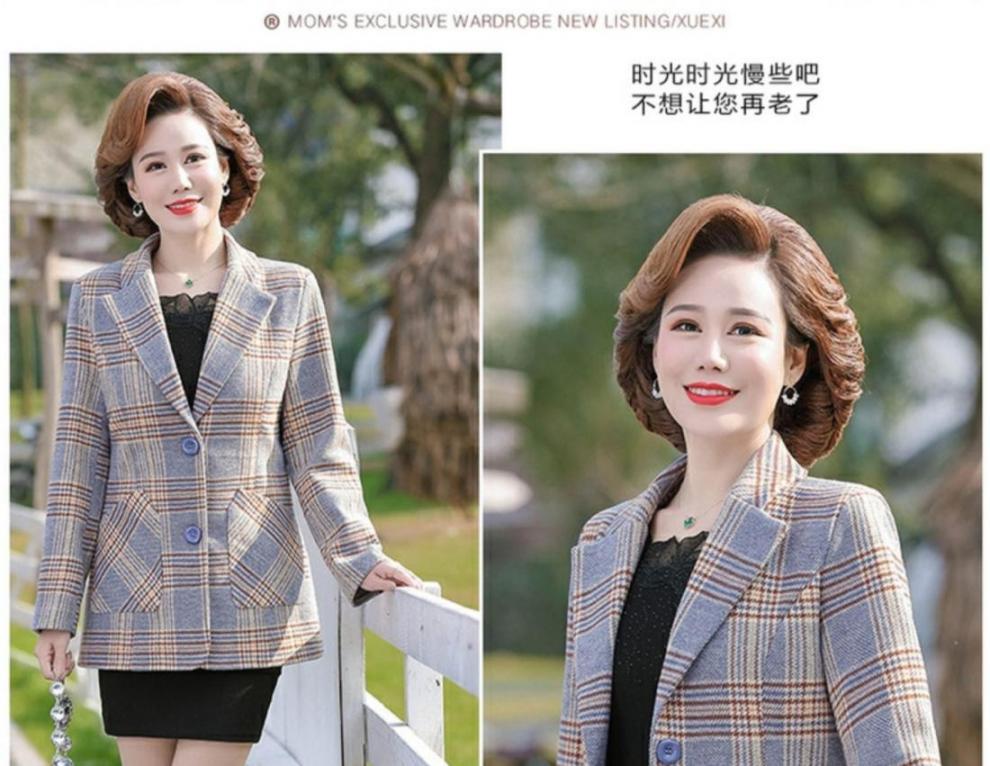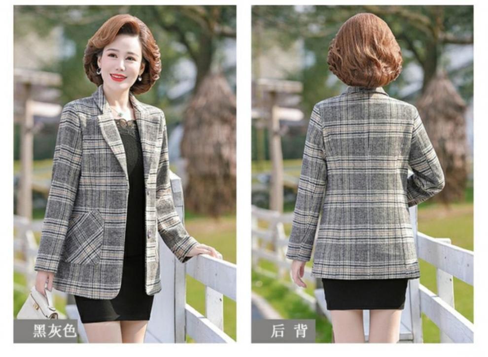 중년 어머니 봄 코트 여성의 2025 새로운 서양식 중년 세트 봄과 가을 짧은 격자 무늬 가을과 겨울 정상스토어 가기
