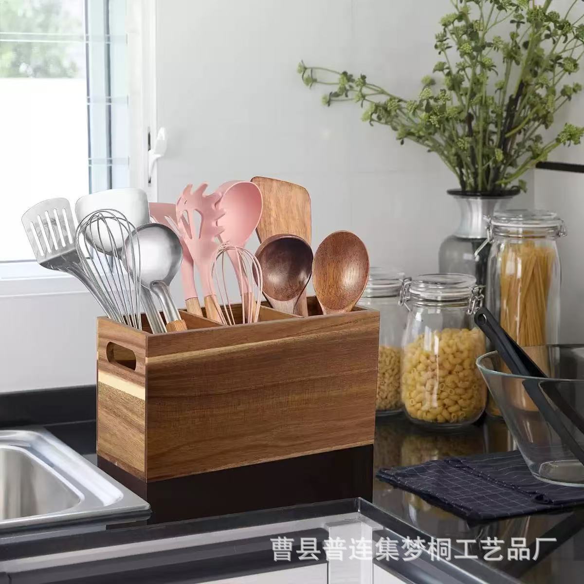 나무 가정용 주방 식기 저장 상자 휴대용 전기 나이프 및 포크 저장 상자 단단한 나무 요리 도구 플래팅 상자