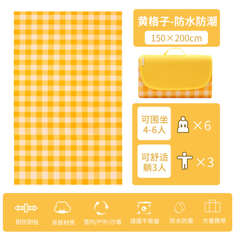 • 두꺼운 노란색 격자 무늬 150*200 [3-6명 앉을 수 있음] 양면 방수/냄새 없음