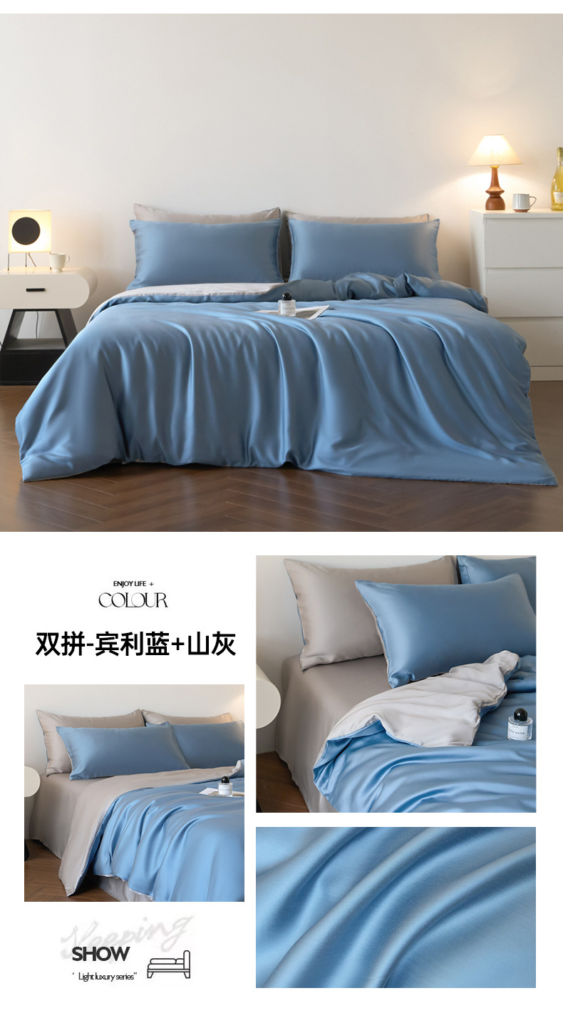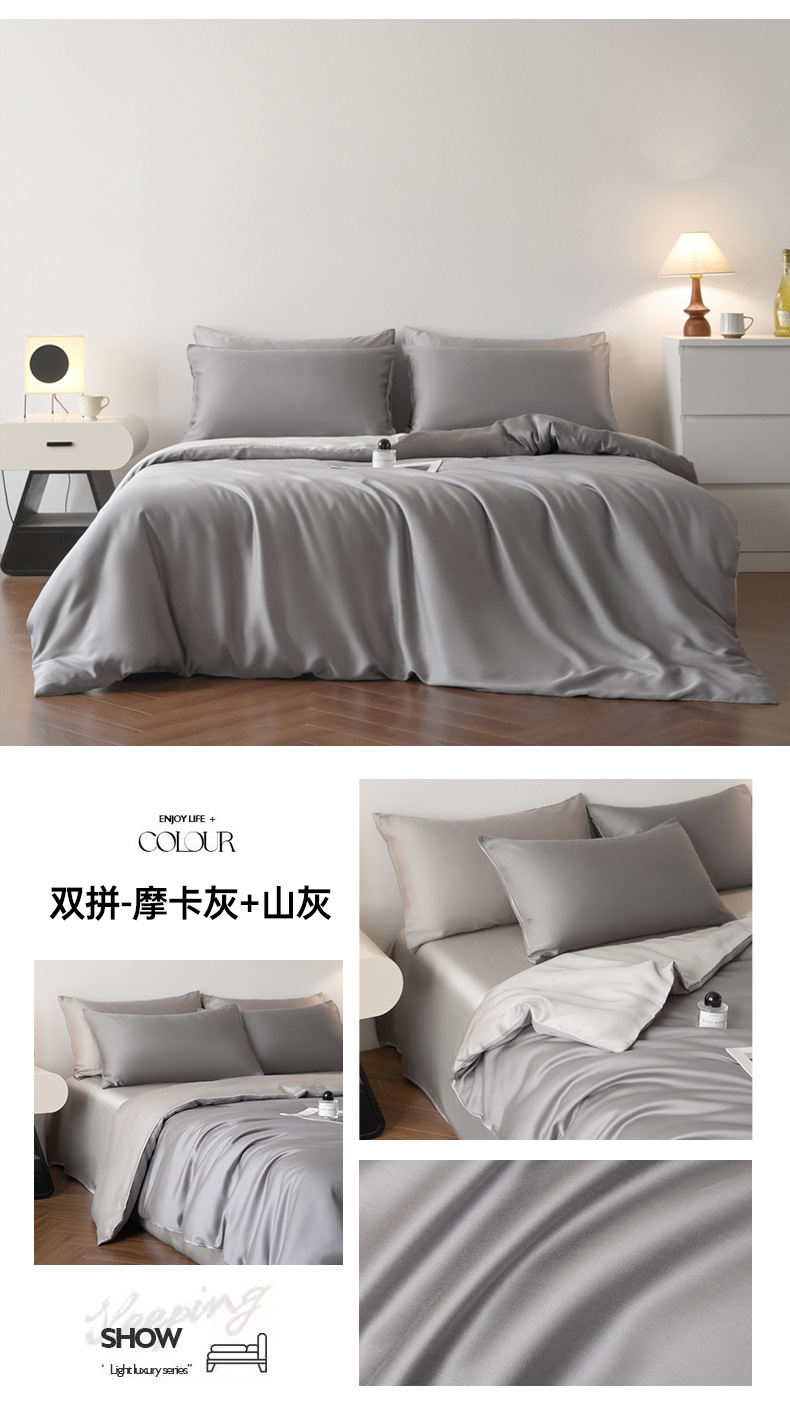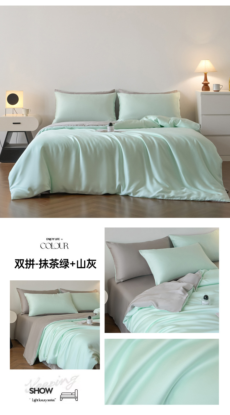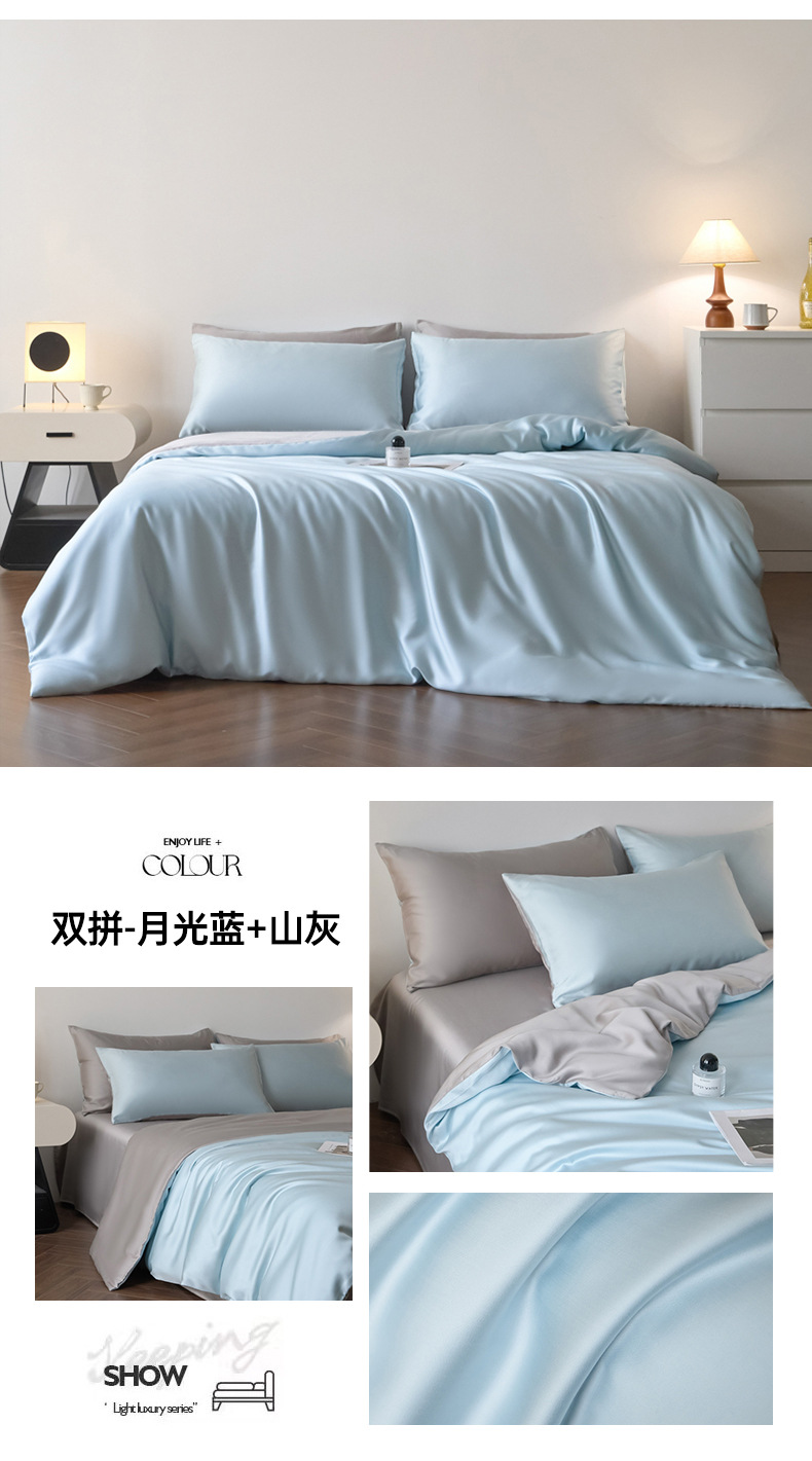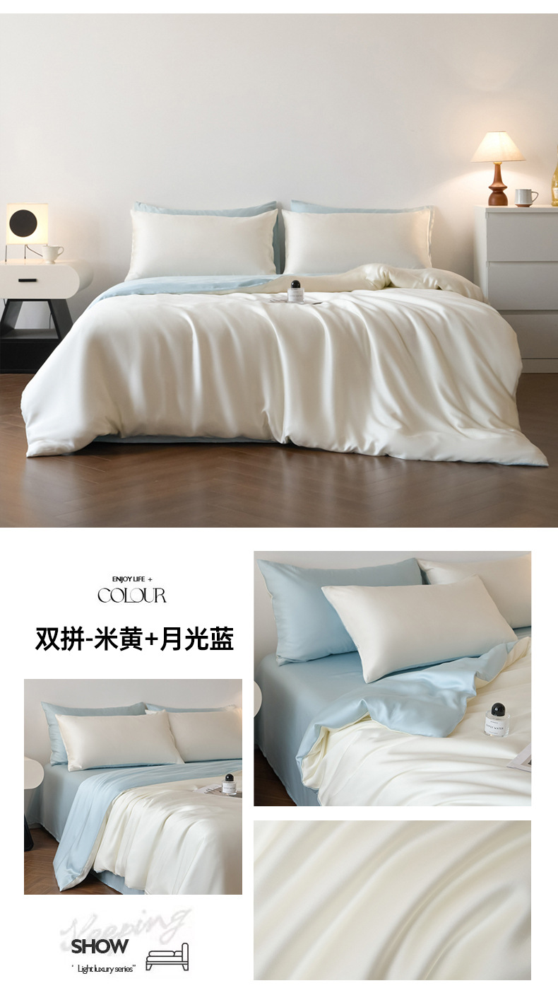 가벼운 럭셔리 더블 스펠 세탁 실크 4 피스 세트 더블 스펠 컬러 하이 그레이드 실크 워터 스키 세트 네이 벗은 시원한 여름 알몸스토어 가기